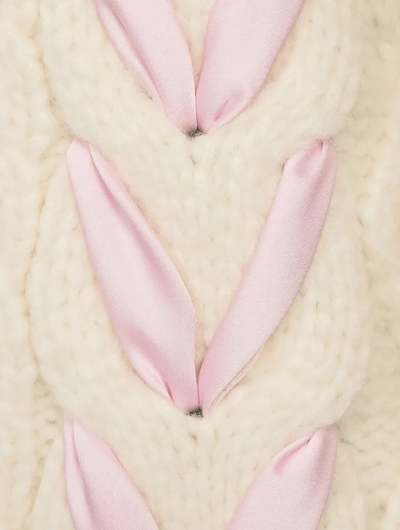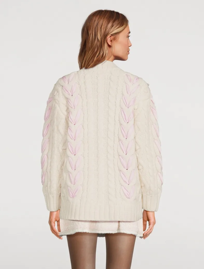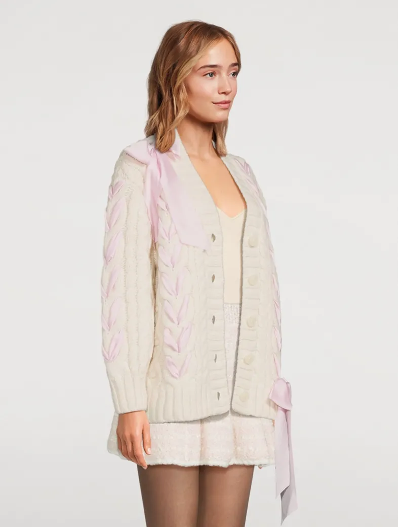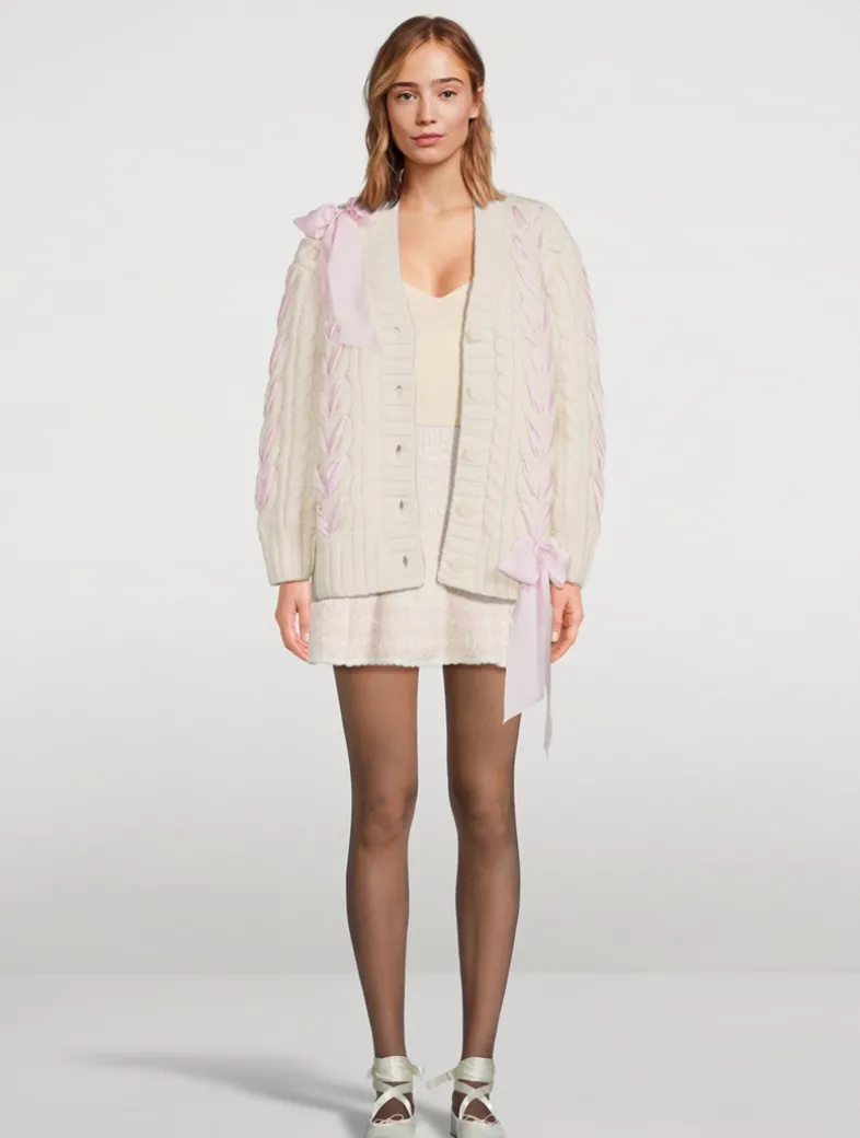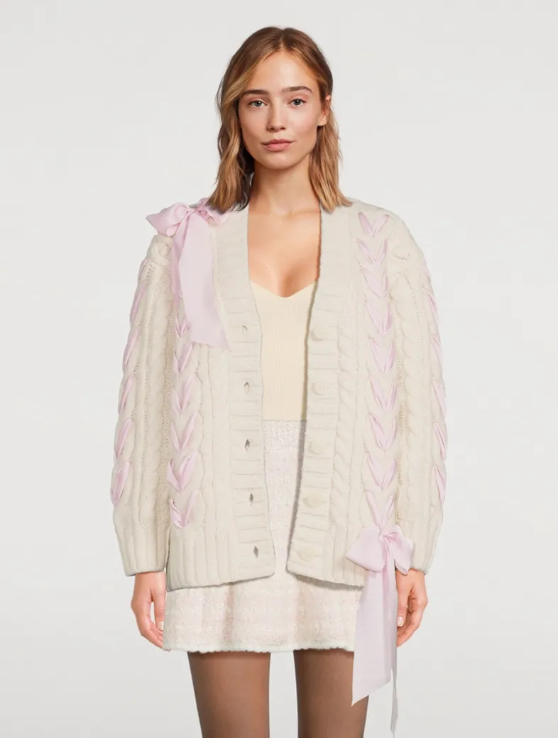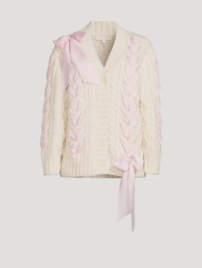 Designed from an ultra-soft alpaca and wool blend with a hint of stretch, this pretty knit features an easy V-neck body and sheer, lace bow insets thoughtfully placed all over the front, the back, and the sleeves.