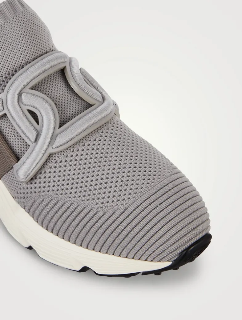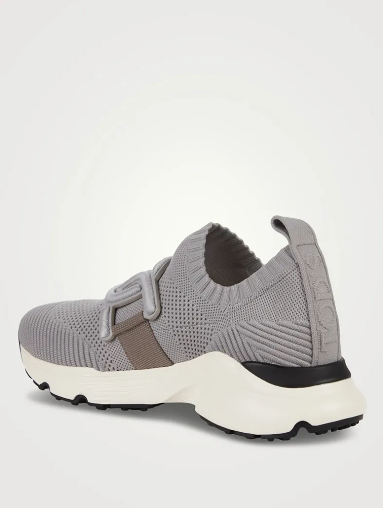 These slip-on sock sneakers in stretchy knit fabric feature a leather chain-style strap detail. The pair is finished with embossed rubber pebbles on the sole – an iconic signature of TOD’S shoes.