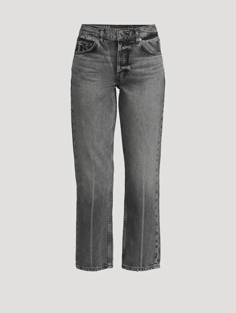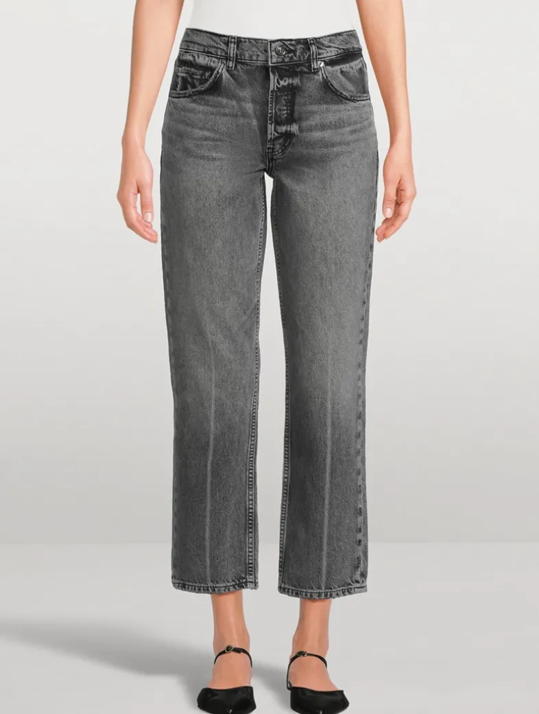 The Kate Jean is constructed from midweight rigid regenerative cotton denim without stretch. They are cut in a mid-rise, straight-leg silhouette with vintage-inspired grinding and abrasions throughout. Certified to the Global Recycling Standard (GRS).