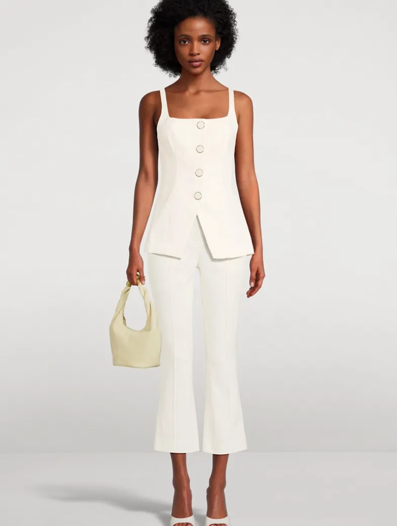 Expertly tailored trousers from a premium stretch cotton, the Kimra pants feature a clean, flat front for easy styling and a slightly flared leg with a cropped length. Rear welt pockets complete the look.