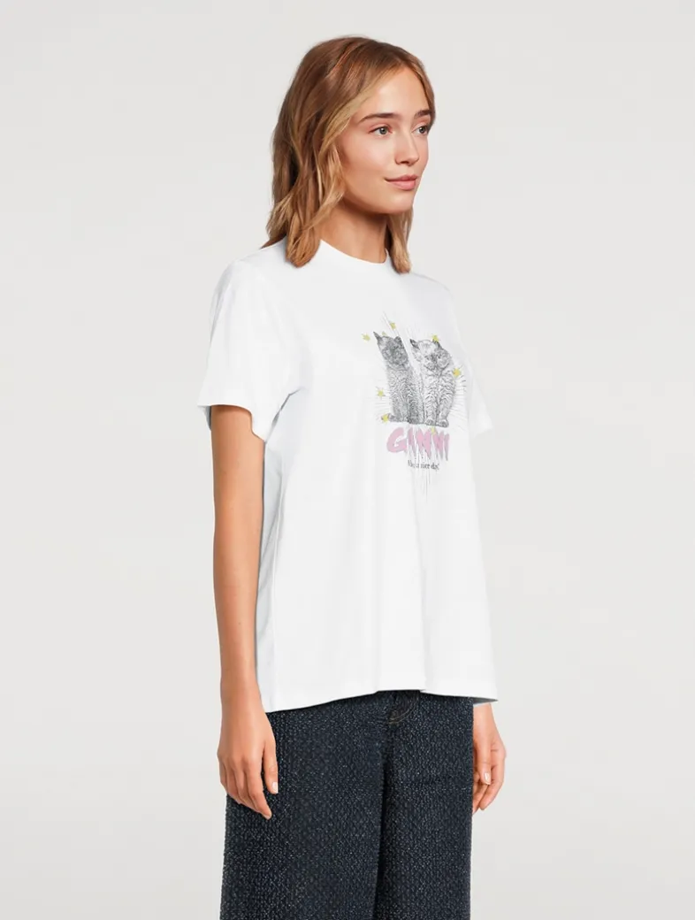 Cut with a relaxed fit, this 100% organic cotton jersey T-shirt features a classic crew neckline, short sleeves and a graphic GANNI kittens print. Certified to the Global Organic Textiles Standard (GOTS).