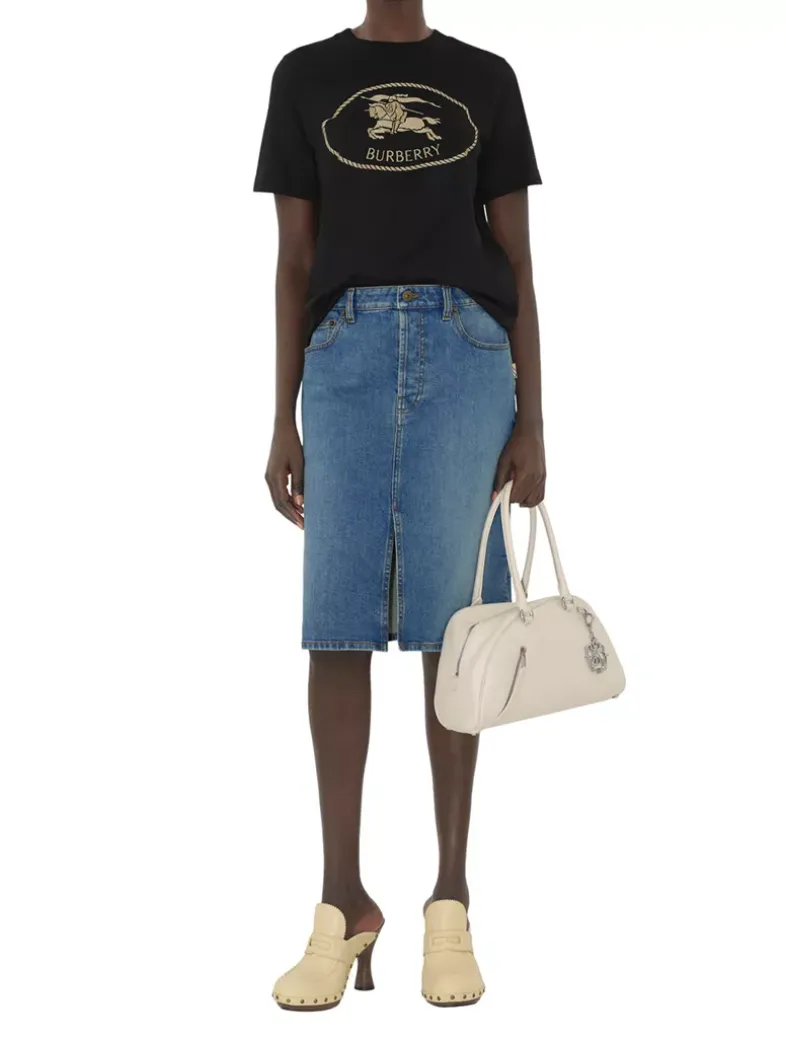 A T-shirt in lightweight cotton jersey, cut to a slim fit. The style is embroidered with our Knight stamp, an archival motif first seen on Burberry bags in the 1980s.