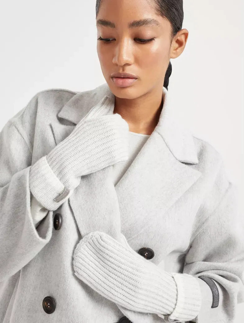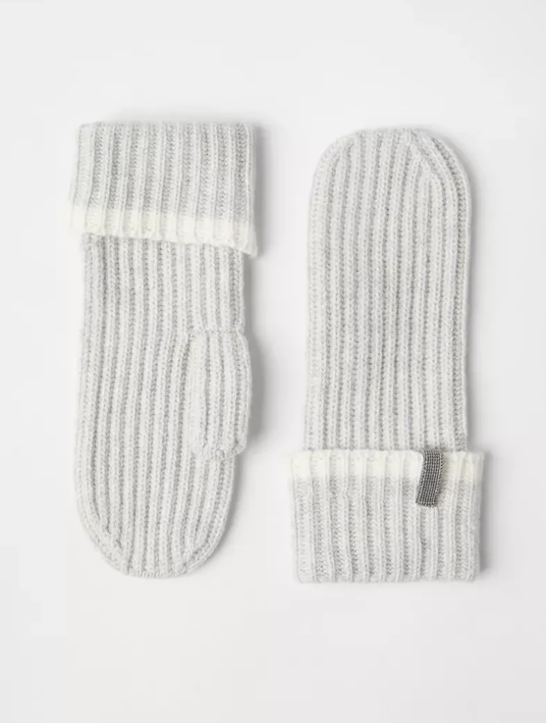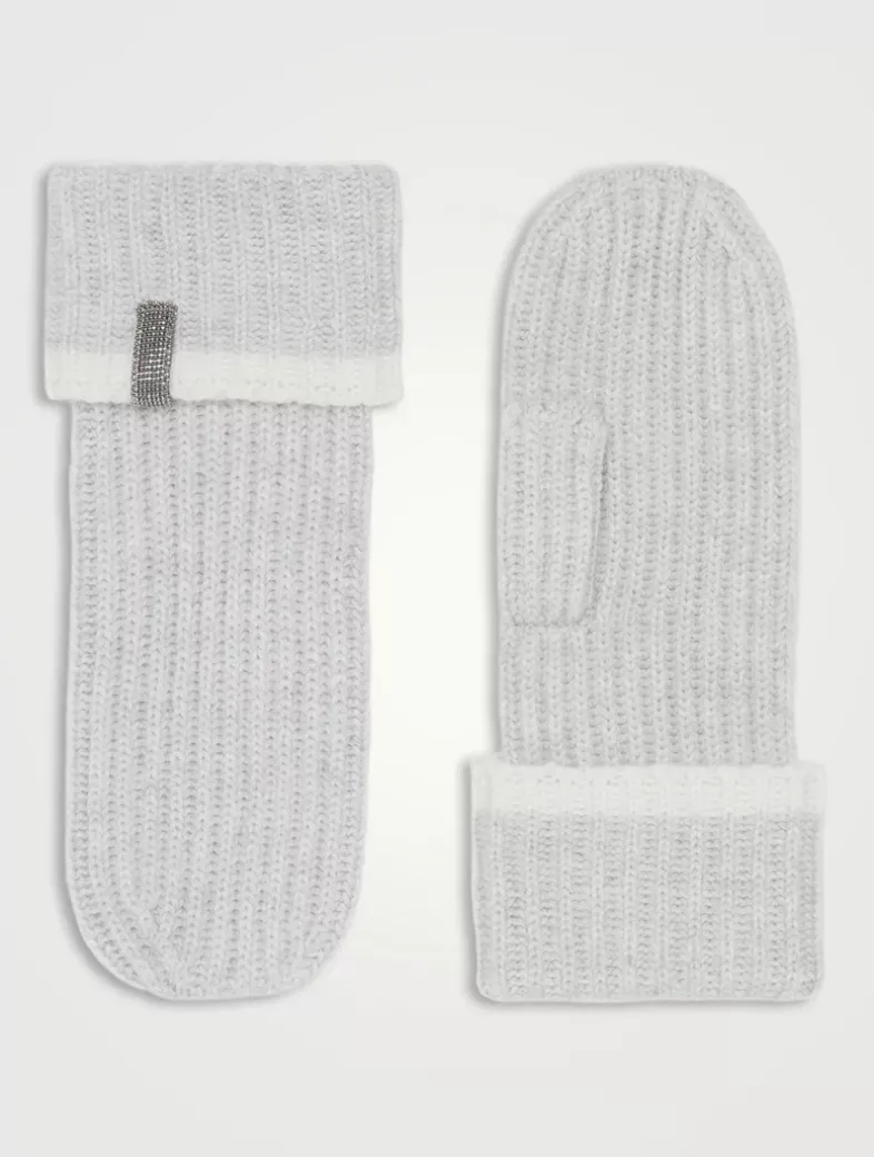 Cashmere English rib knit mittens with monili