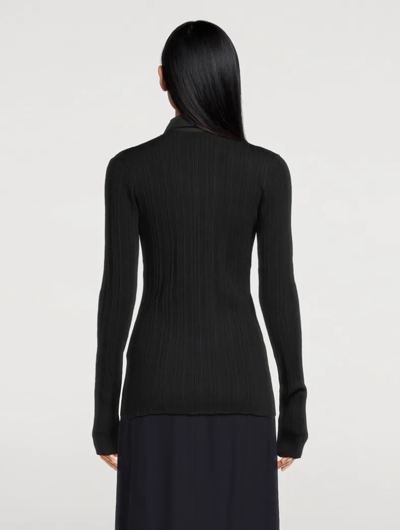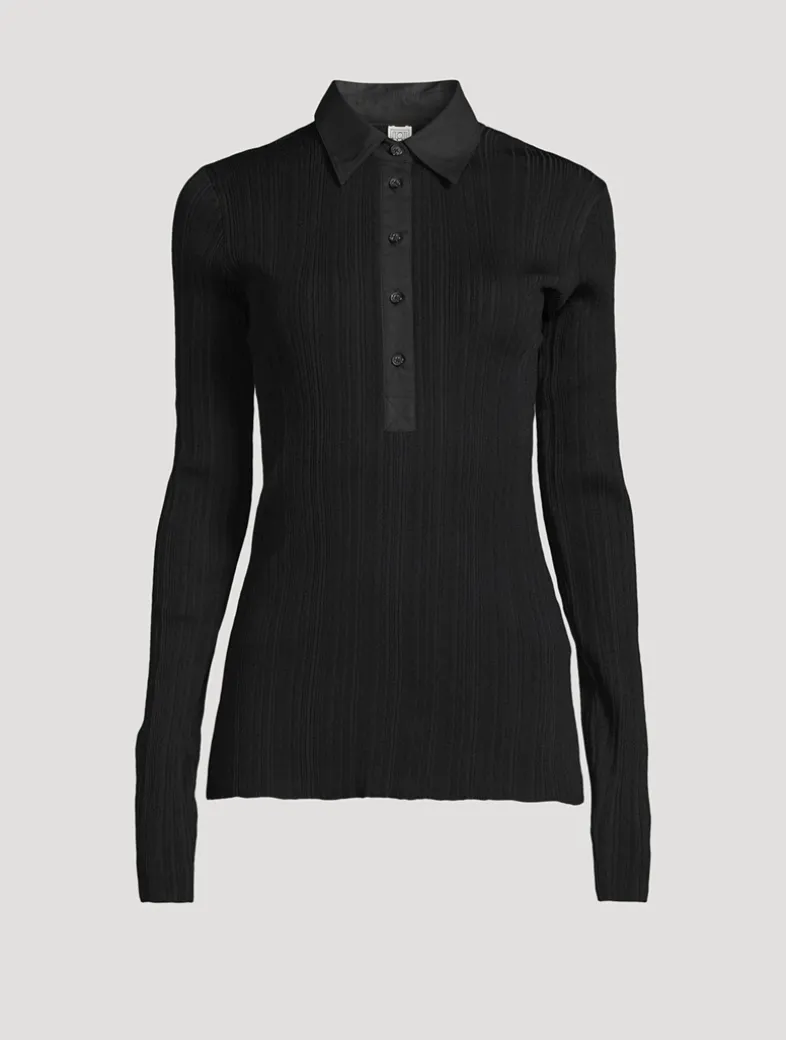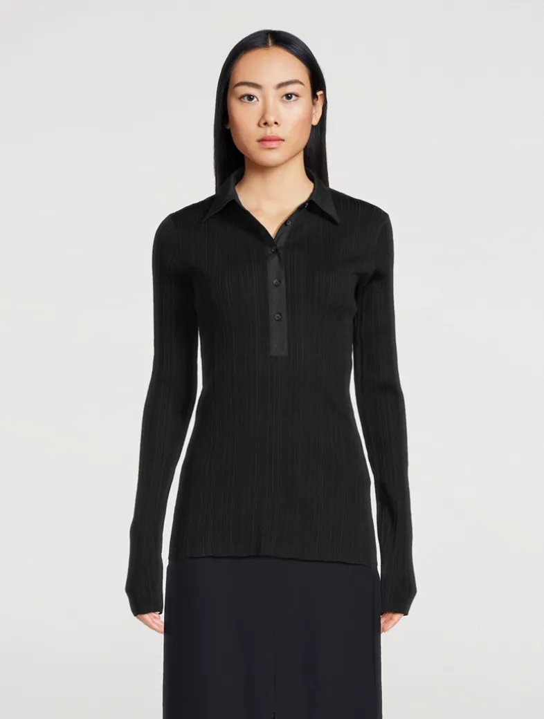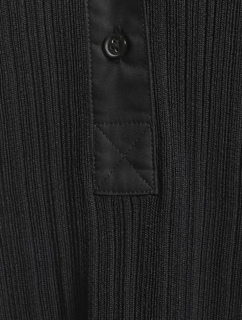 This slim-fit knit is decorated with shirting elements, including a collar and a buttoned half placket. It is knit from a ribbed fabric crafted from Naia™ cellulose, an innovative fiber originating from responsibly sourced wool pulp.