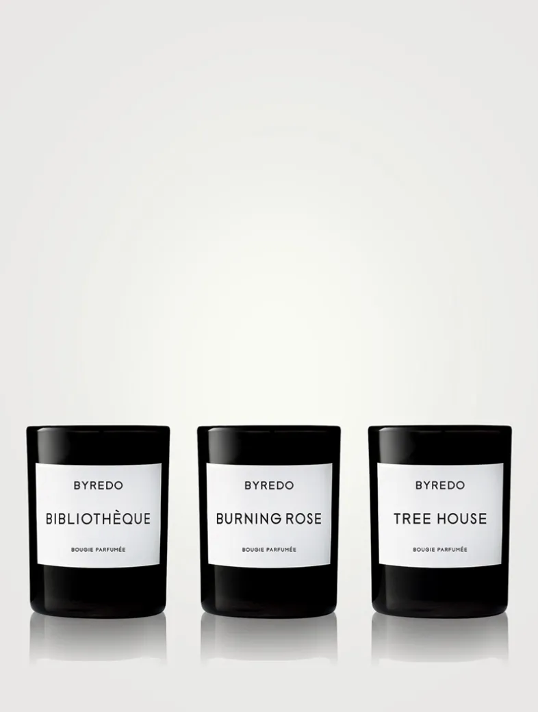 La Sélection Bois offers three scents built around warm and enveloping woody notes. Bibliothèque, Burning Rose and Tree House. Each set contains a light, medium and strong-scented candle, ideal to use around the house and to light at different times of the day. The variations in intensity create a distinctive yet coherent atmosphere throughout the house.