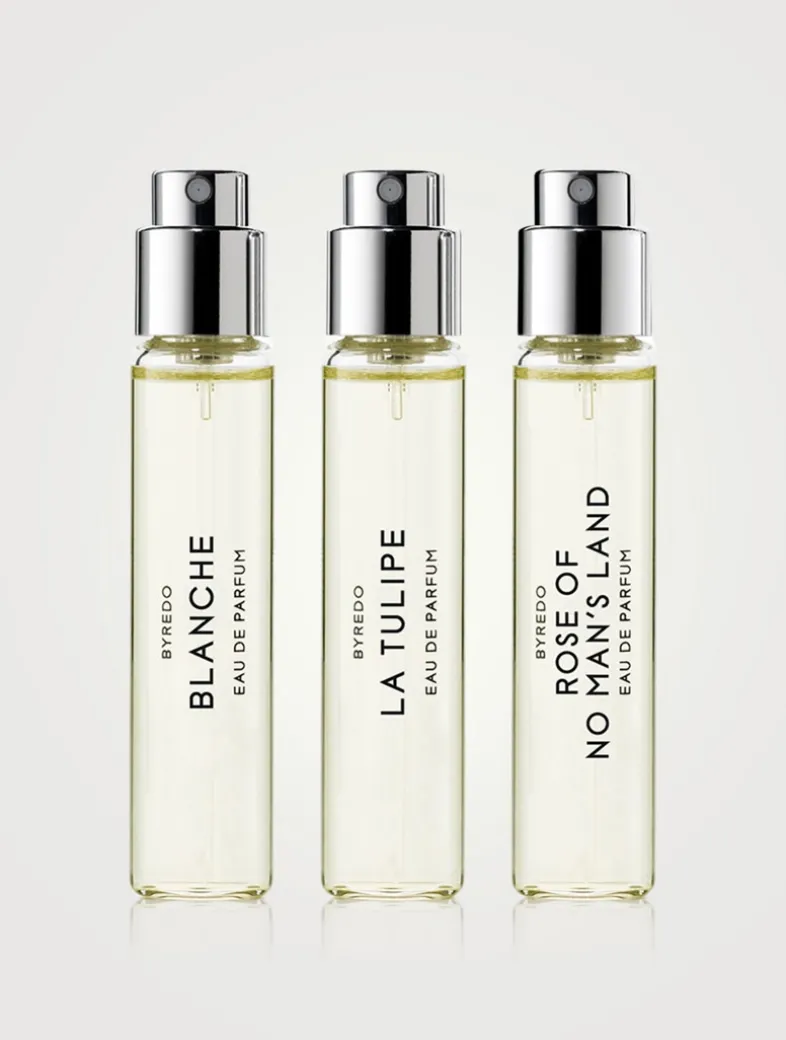 Byredo combines three of its iconic fragrances – Blanche, La Tulipe and Rose of No Man’s Land – together in La Sélection Florale. This grouping of the French luxury brand’s eau de parfums in mini vials create functional and timeless use, and when applied it excites the senses for a sublime olfactory experience. Pair with Nécessaire de Voyage leather travel cases for stylish and easy transportation.