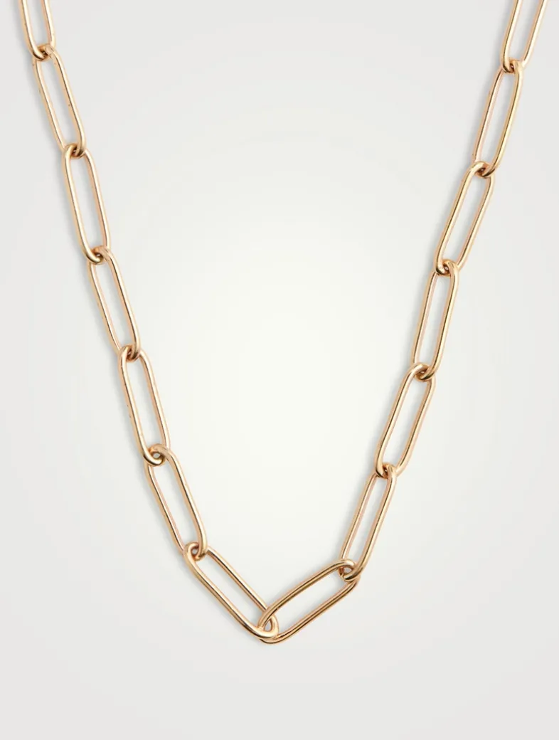 Made in Canada from 14k gold, this paperclip chain fastens with a lobster clasp.