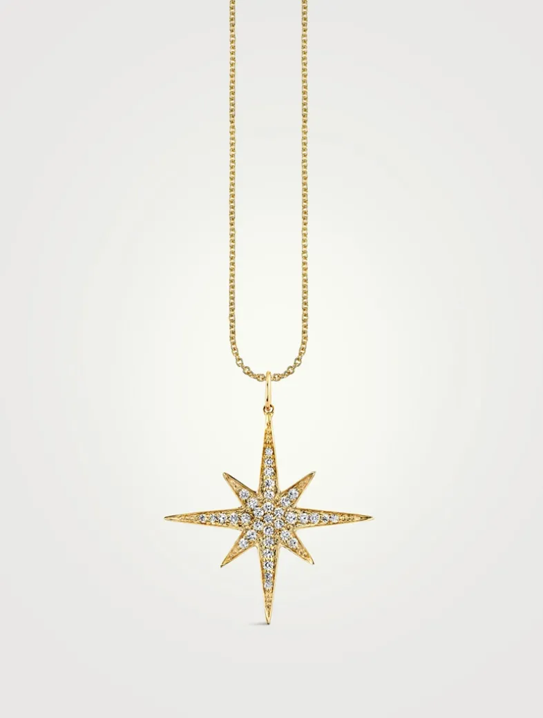 Made with a classic cable chain, this necklace features the brand’s iconic starburst pendant encrusted with sparkling pavé diamonds.