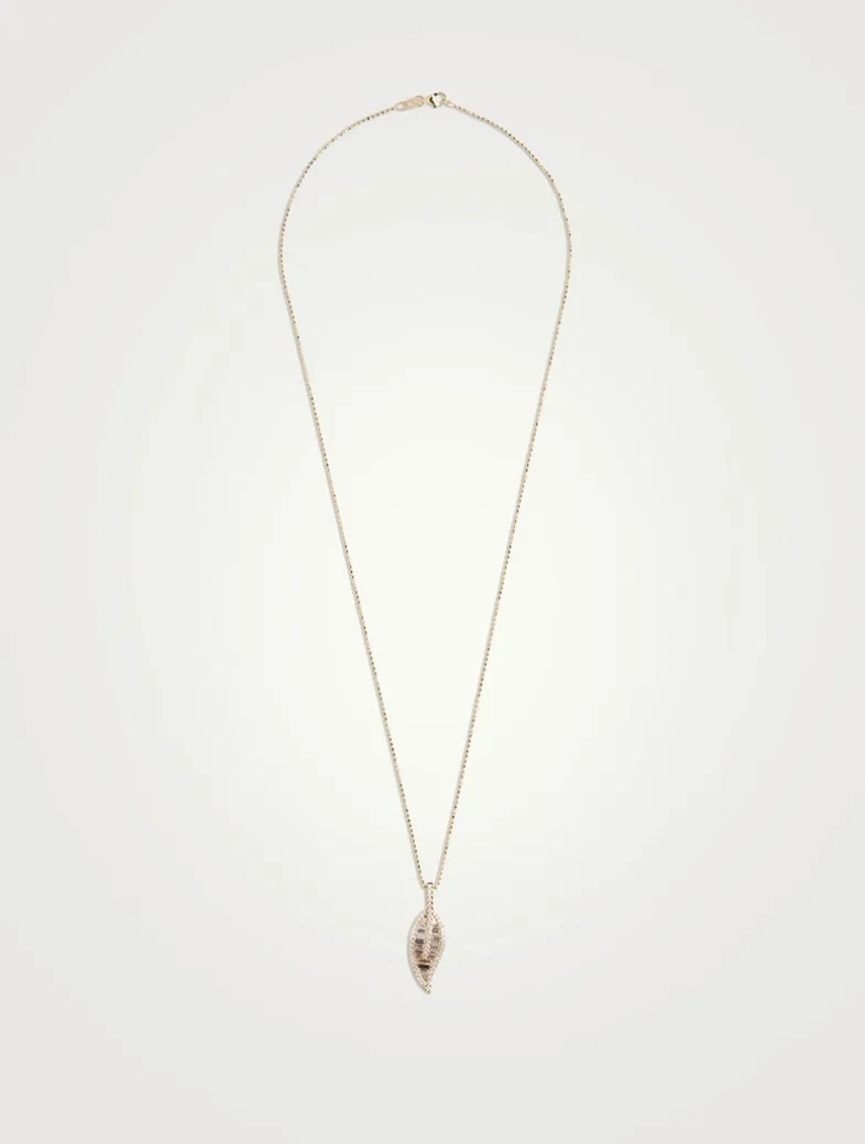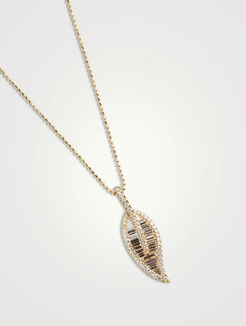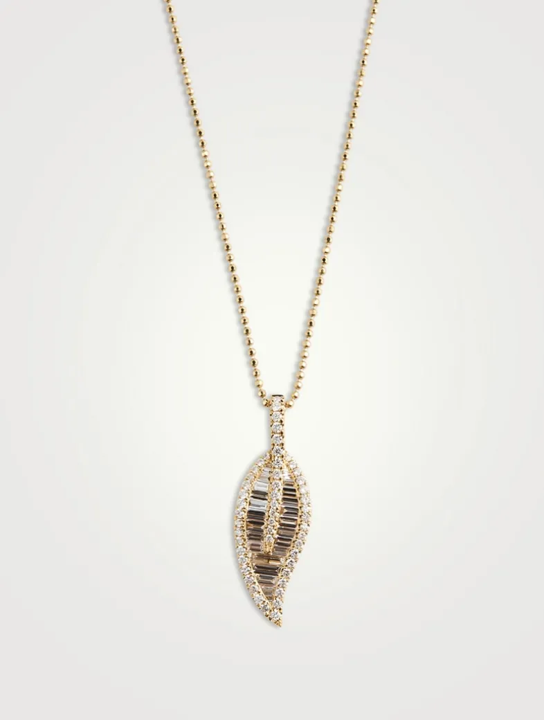 Set on a ball chain, this necklace features a large leaf pendant with baguette and round-cut diamonds.