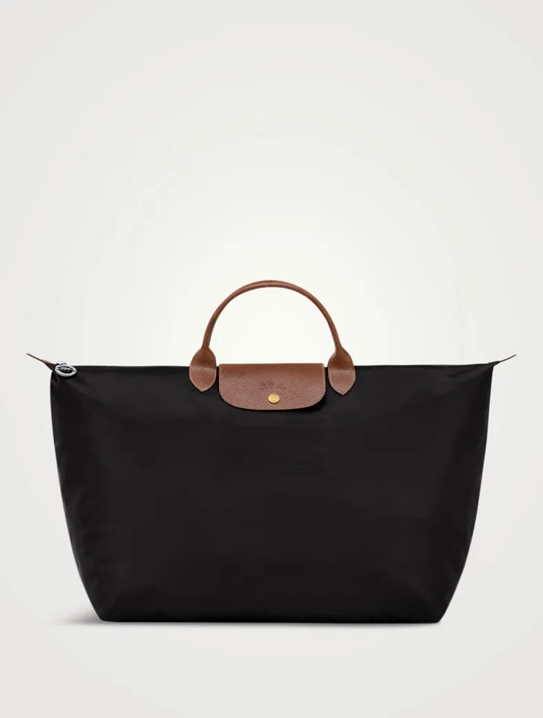 Iconic and world famous, Le Pliage draws its genius from origami. The flap and handles of this roomy weekender are presented in Russian leather, while its ears and its snap closure make it recognizable at a glance. Crafted from coated canvas, it is finished with two interior slip pockets.