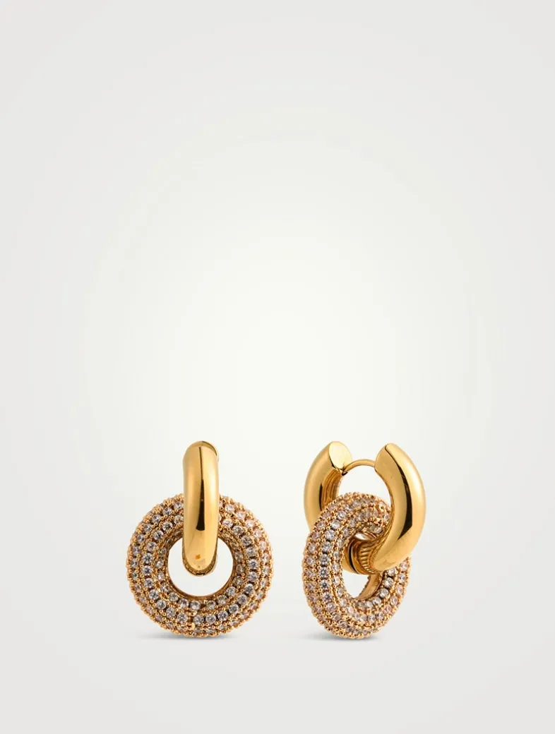 These Jules hoop earrings are adorned with large pavé doughnut-shaped charms.