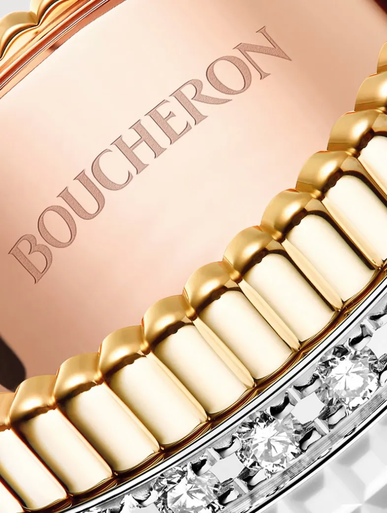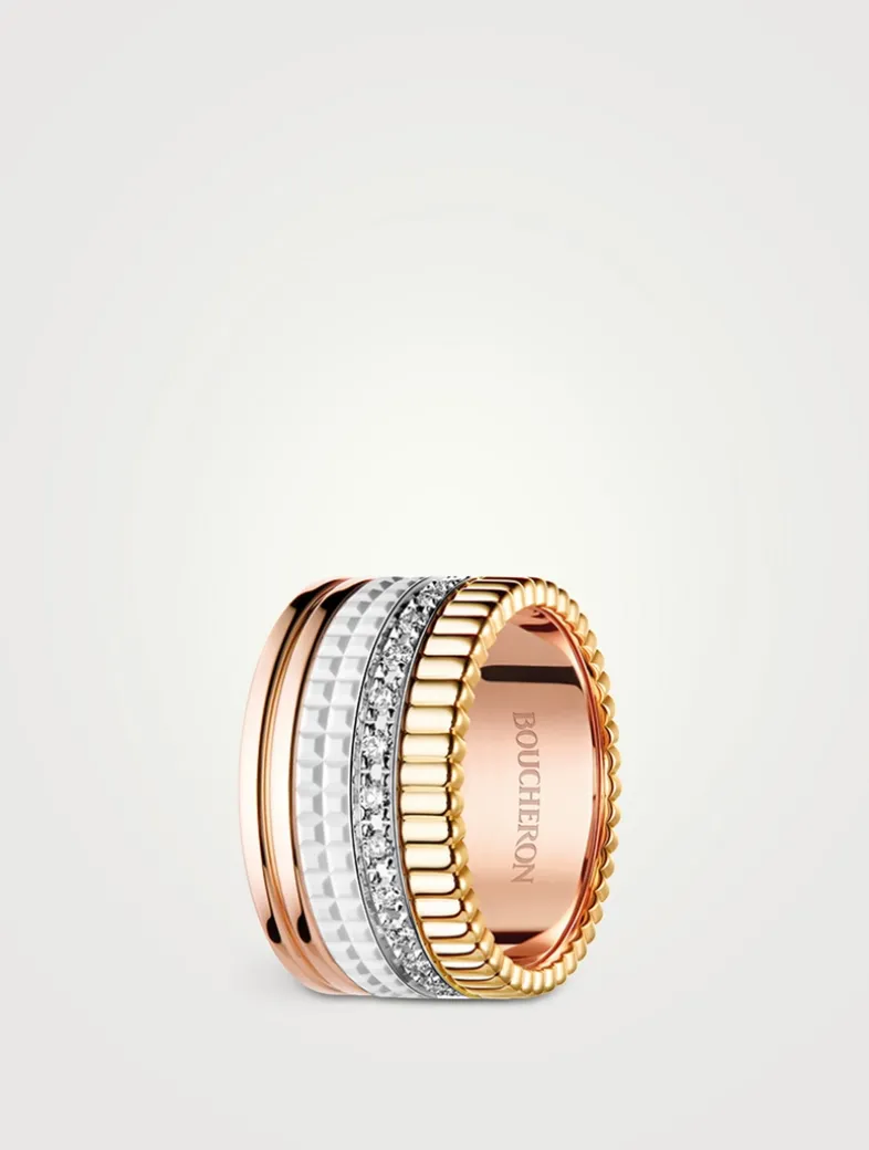 When diamonds adorn the White Edition, this ring becomes the epitome of all its features: the dazzling whiteness of ceramic, the diamond’s brightness, the polish of white, yellow or pink gold.