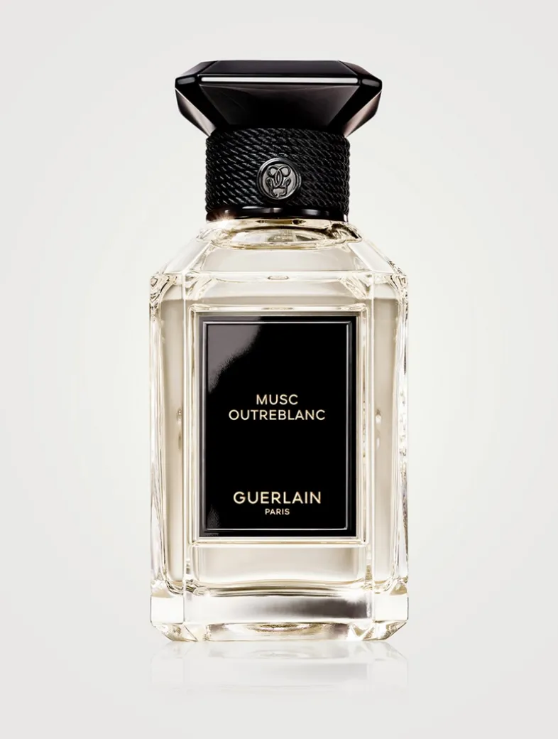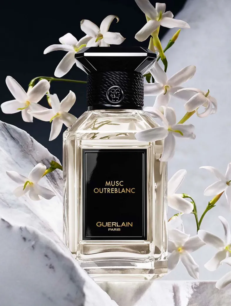 A Many-faceted Floral Interpretation Of White Musks: Whiter than white, an immaculate musk accord is highlighted by vibrant notes of neroli. Sculpted by the Guerlain Perfumer’s own hand, this musk monolith shatters to pieces, revealing a floral heart that beams anew with white radiance.