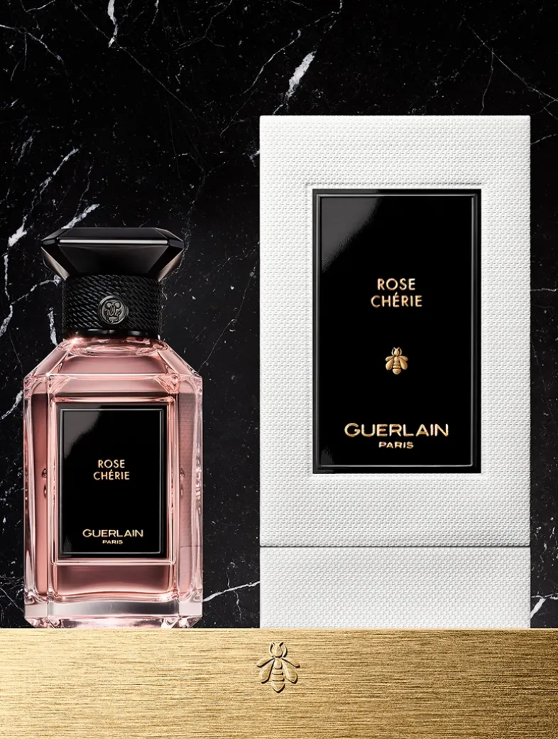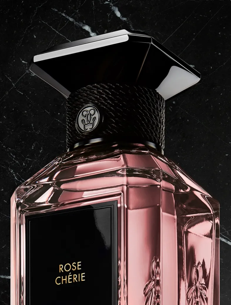 A Fresh, Tender Interpretation Of The Rose: A declaration of love à la Guerlain, Rose Chérie pays tribute to the most cherished flower among Perfumers. Heightened by an almond note, its trail reveals the beating heart of a delicate rose.