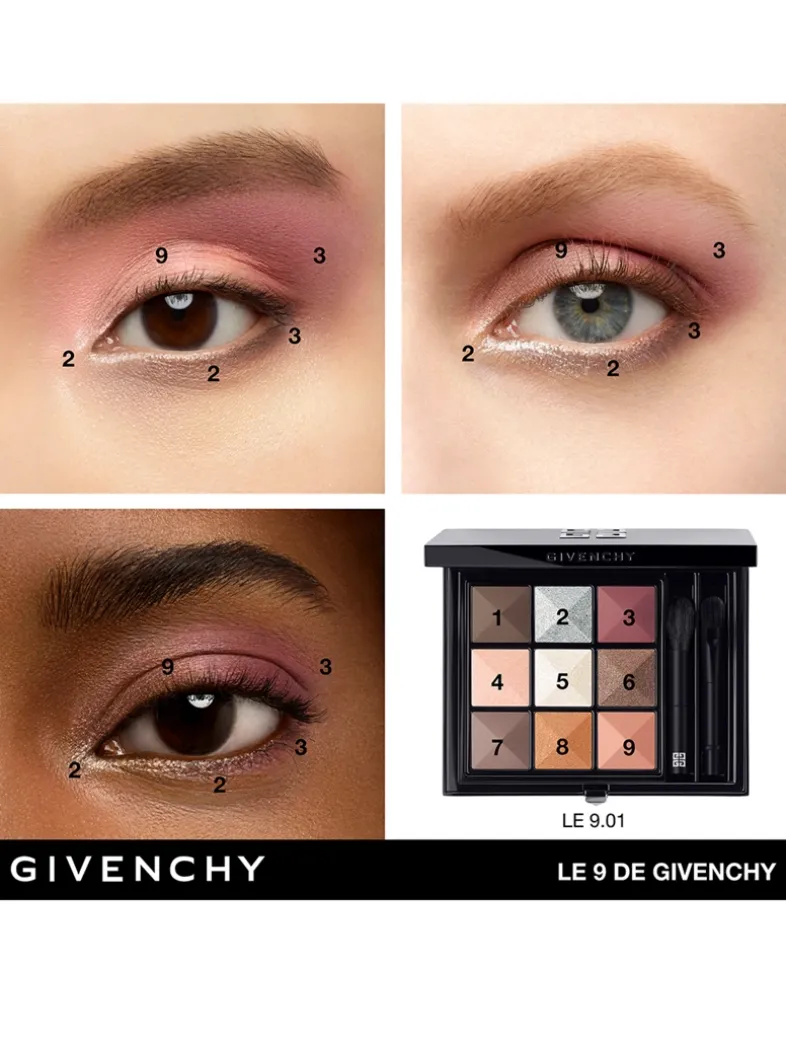 Inspired by the boldest and most sophisticated looks from the runway, the Givenchy Le 9 palette brings together nine long-wear eyeshadow colours in one couture signature palette for a multitude of customizable effects, from the most natural to the most daring.
