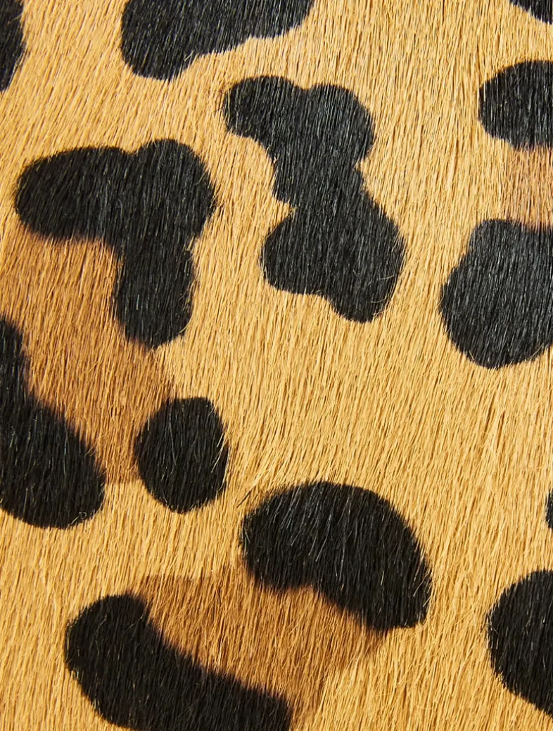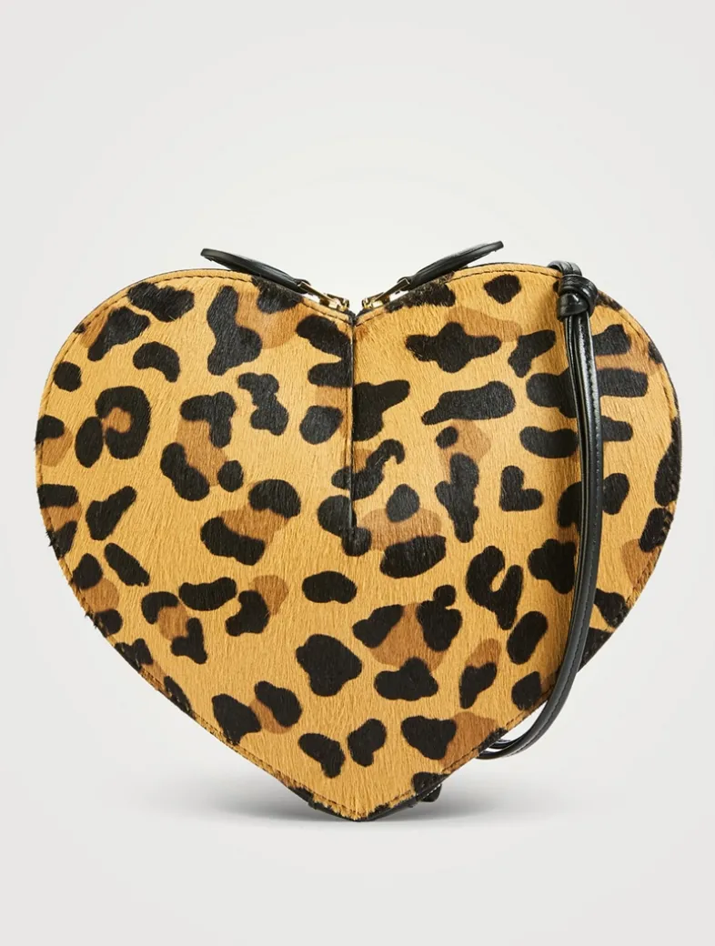 Alaïa’s signature heart bag has a simple cut in the leather to create volume and pure shape. Made in Italy, it is designed with a zippered closure and an adjustable shoulder strap. This version is crafted from leopard-printed calf hair.