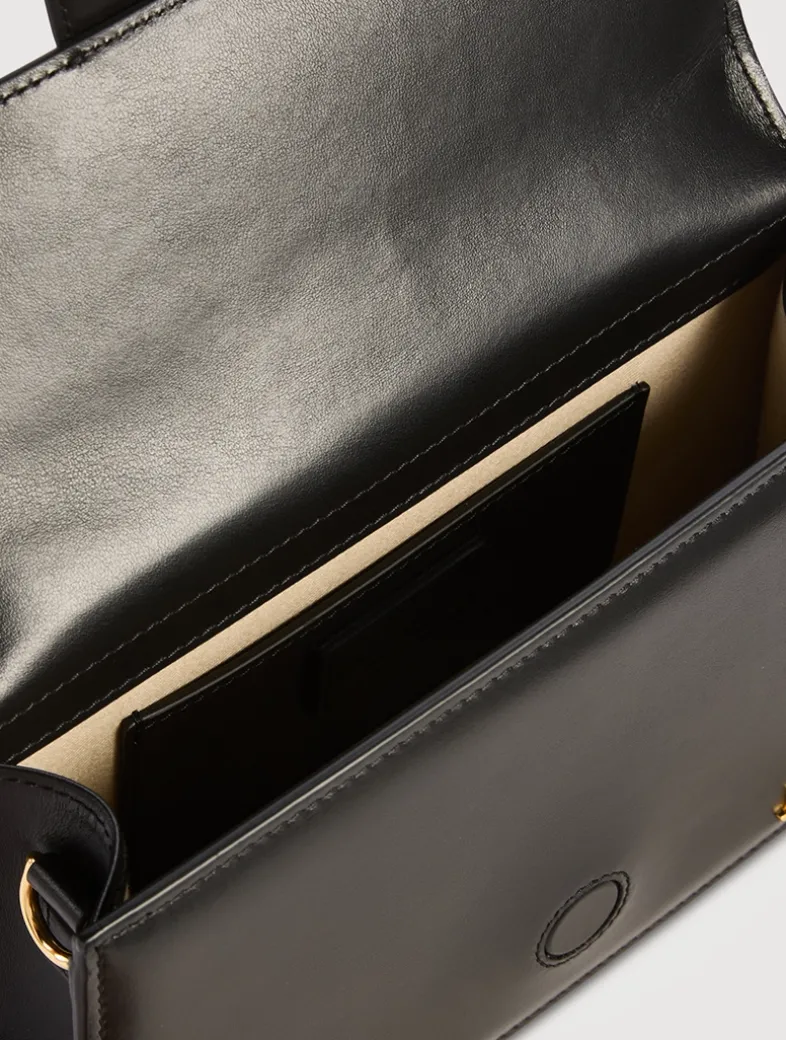 This envelope-style handbag has a structured silhouette rendered in luxurious leather. A patch pocket at the back and an interior slip pocket serve to keep your essentials secure. It can be carried by its padded top handle or worn across the body on a removable and adjustable shoulder strap.