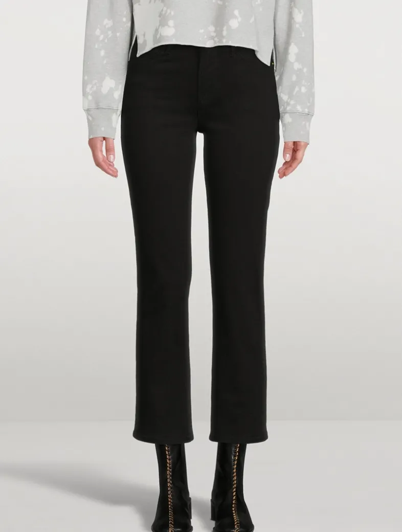 These jeans have a slim-fit, straight-leg silhouette with a high-rise waist and a subtle nip at the knee. Crafted from premium denim with super stretch and strong recovery to hold its shape.