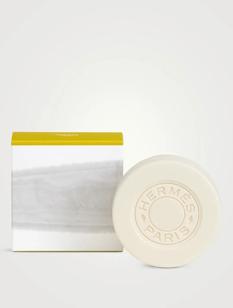 The perfumed soap Le Jardin de Monsieur Li cleanses and delicately perfumes the skin without drying it out. A garden which awakens and promises harmony, between what is real and imaginary, home to wet stones, jasmine and kumquat. This round, gentle perfumed soap sits inside a case with artistically applied grey and imperial yellow tones. Another way to wear fragrance with Le Jardin de Monsieur Li.