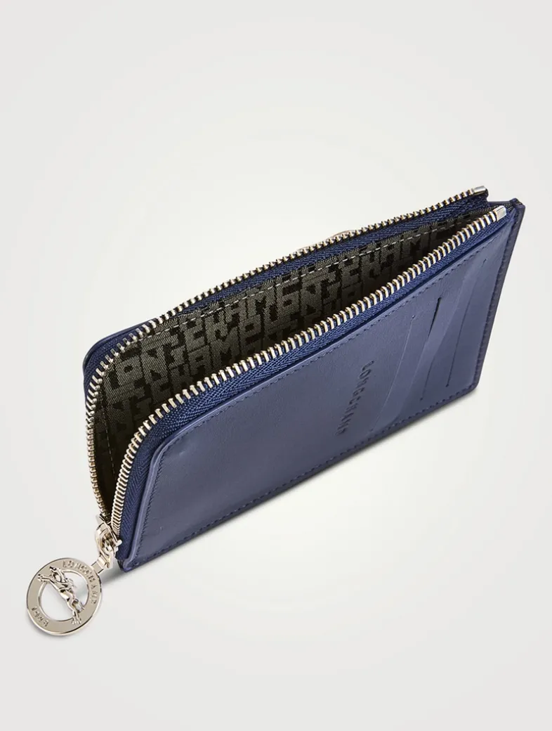 This slim case, featuring workwear-inspired details like contrast topstitching and a leather tag, evokes the timeless look of work coveralls. It seamlessly combines practicality and style with its zippered compartment and four card slots.