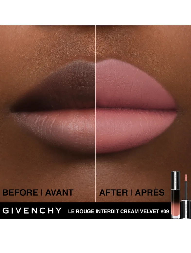 Discover the long-wear Le Rouge Interdit Cream Velvet Lipstick from Givenchy. The highly-pigmented matte velvet liquid lipstick also offers hours of comfort. The long-lasting lipstick comes in 8 shades ranging from iconic reds to natural nudes, as well as perfect pinks. Infused with shea butter and meadowfoam oil that provides hours of hydration, moisture, and comfort to the lips. The ultra-sensorial formula combines a light velvety whipped texture with incredible colour payoff for a blurry matte finish. Le Rouge Interdit Cream Velvet Lipstick offers multiple looks, from a soft-focus blur to more defined matte-blurred sophisticated lips.