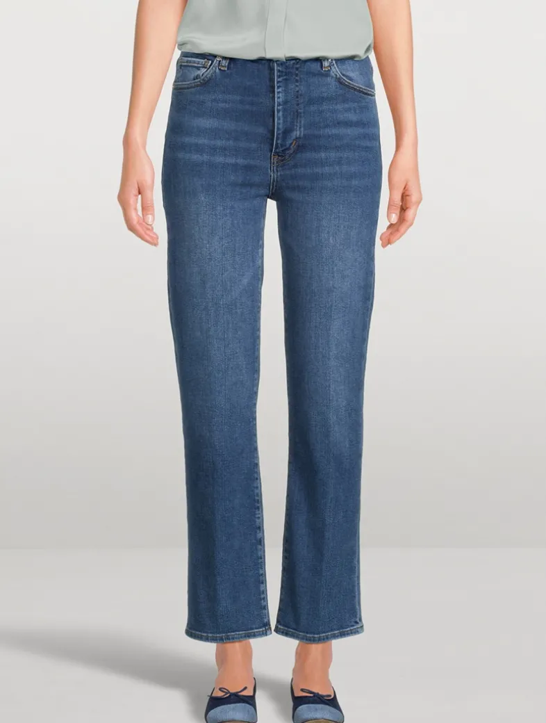 A new fit within the FRAME straight line up—the Sleek Straight is a true everyday jean. Featuring a mid rise, an ankle-length inseam, and relaxed seat for ultimate all-day comfort and superior recovery.