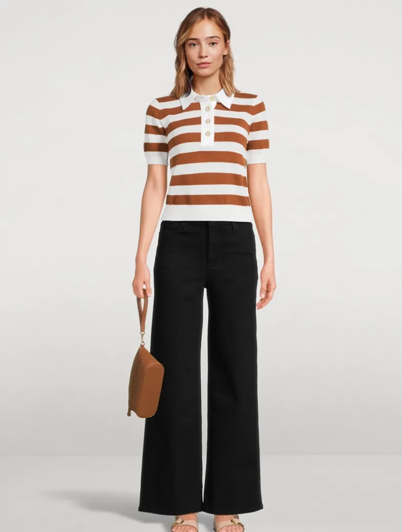 A FRAME introduction to the best-selling palazzo silhouette, this pair is designed with a flattering high rise, fitted hip, and subtle wide-leg flare that hits at the floor. Crafted from an ultra-stretch cotton blend for soft and comfortable wear.