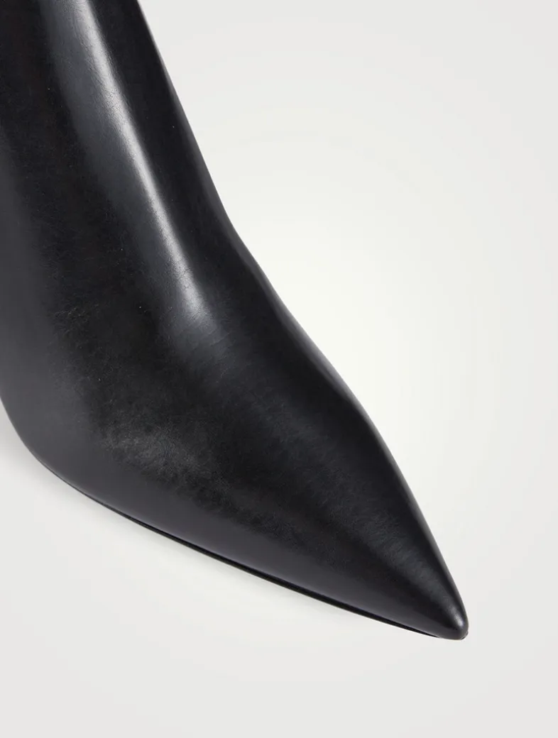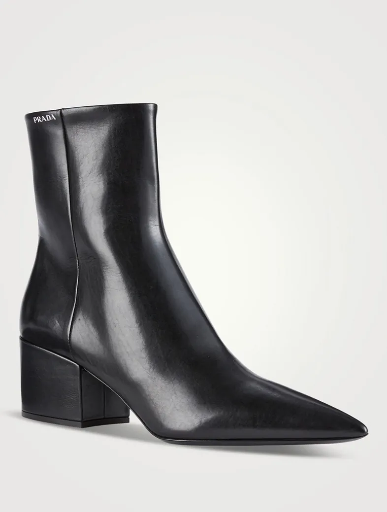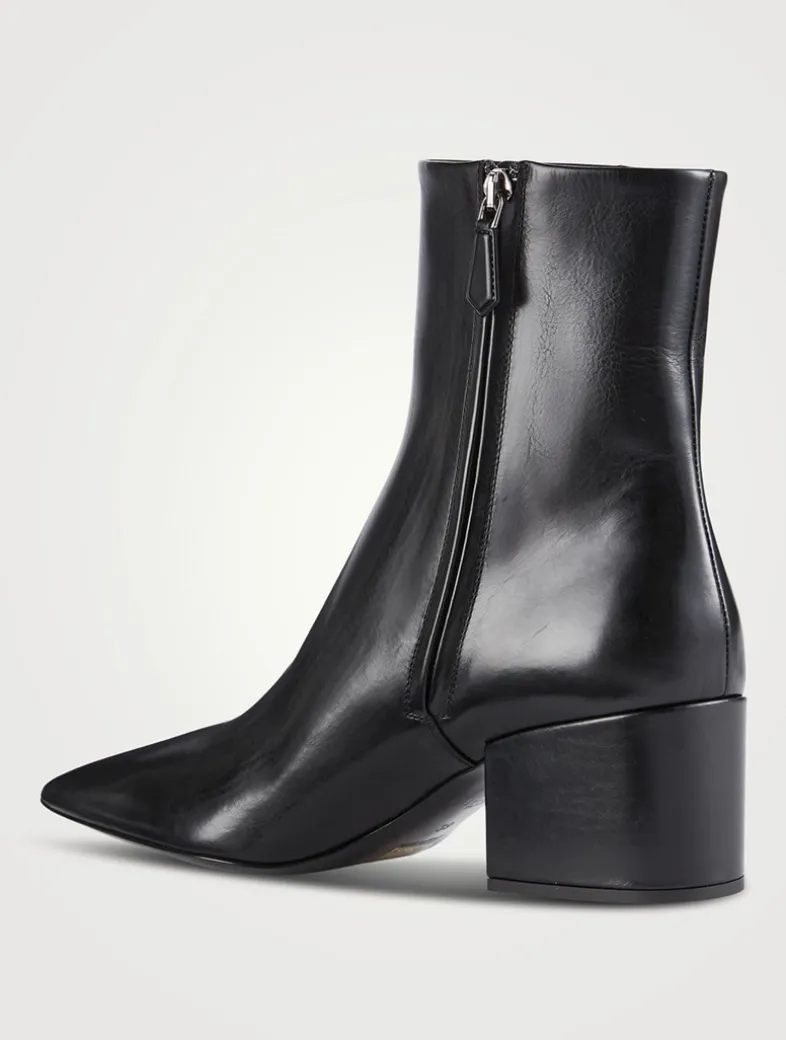 Made in Italy from smooth leather, these classic leather booties have an elongated pointed toe balanced by a bold block heel.