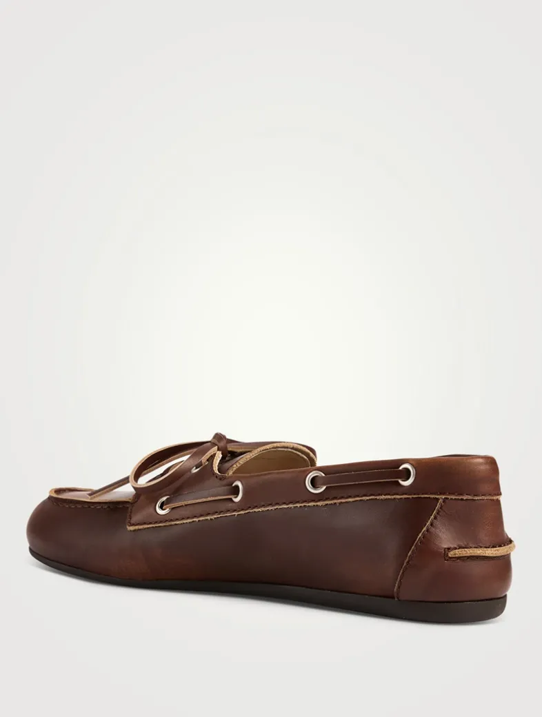 Vintage inspiration and a collegiate attitude are combined in these boat-style loafers in leather with a deliberate bleached effect.
