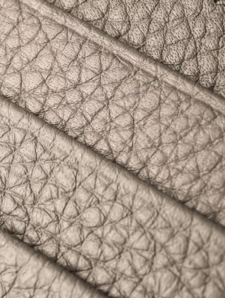 Metal lettering logo Six card slots One inside pocket Moiré and leather lining