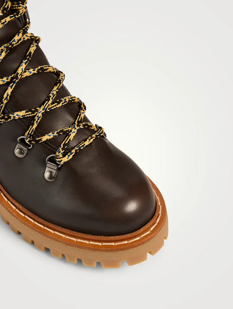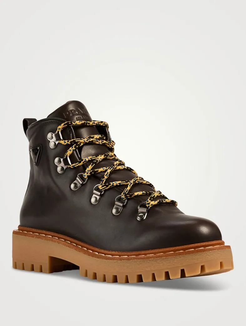 These leather ankle boots reinterpret a classic hiking silhouette with contemporary details that add a refined touch to the sporty design.