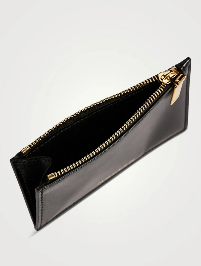 Crafted from box calf leather, this case features a central zip compartment and four card slots. Finished with a metallic foil McQueen logo.