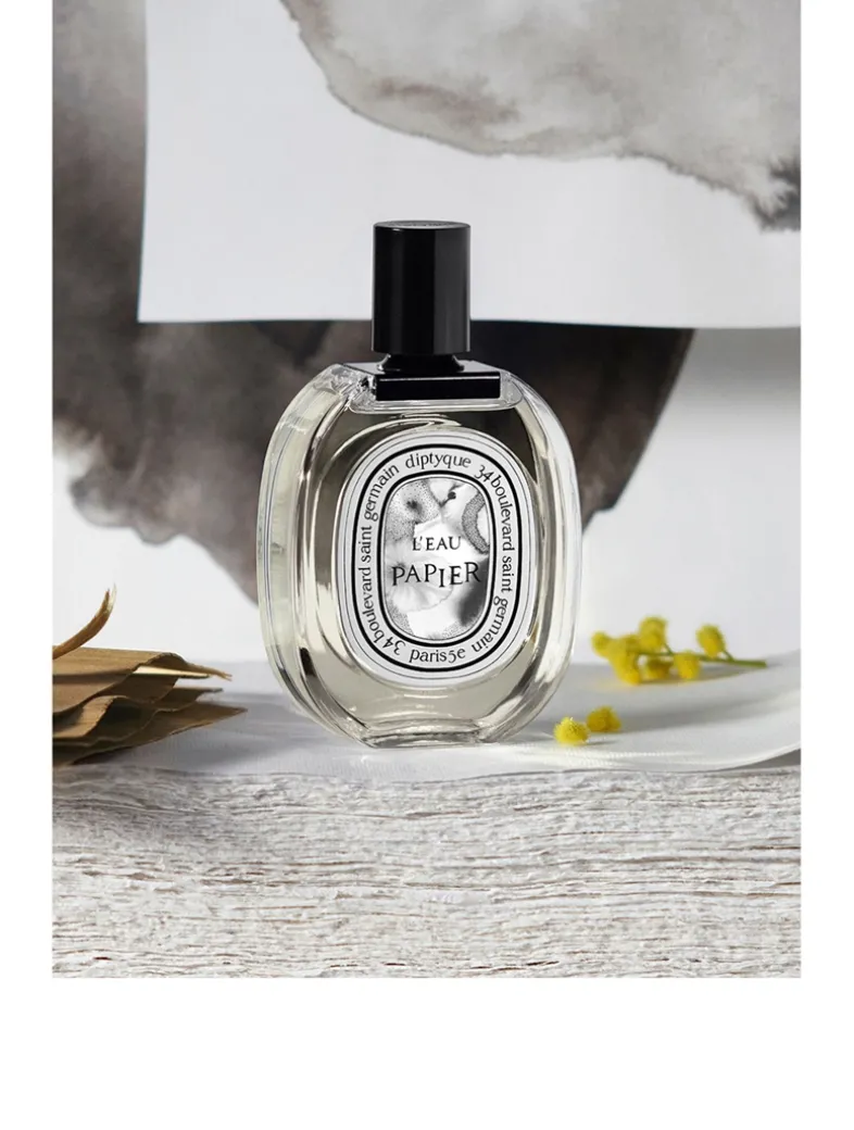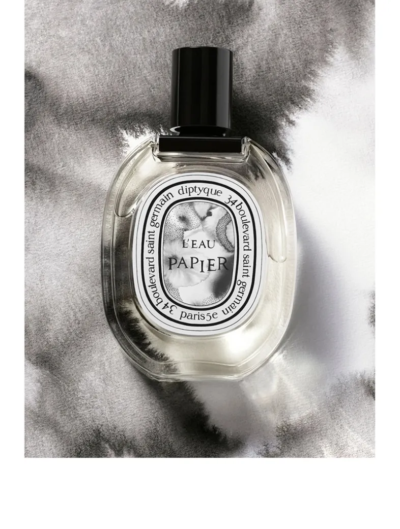 Developed in collaboration with perfumer Fabrice Pellegrin and artist Alix Waline. L’Eau Papier is a tribute to creation – the backbone of the Maison – and to paper, the primary means by which that creation is expressed. The name of this creation brings together water and paper, recalling both the history of the Maison and the founding trio’s driving passion for the line and the brush-stroke. It conjures up the diluted ink that permeates the page and calls forth shape – the act performed by every artist composing a drawing and giving free rein to their imagination. In this eau de toilette, the perfumer used Grasse mimosa, a variety that has been cultivated since 1865. Its downy yellow flowers bloom in February on the hills around the town of Grasse, offering a stunning sight scented with sunny, floral and honeyed notes. French artist Alix Waline has stayed true to her own style, fashioning a work in delicate black and white, deploying shades and textures in abundance, and elaborating the drawing dot by dot, layer by layer. In a complete contrast to traditional illustrations for Diptyque perfumes, there is no recognizable figure or scenery – rather, an impressionistic, abstract composition in black and white.