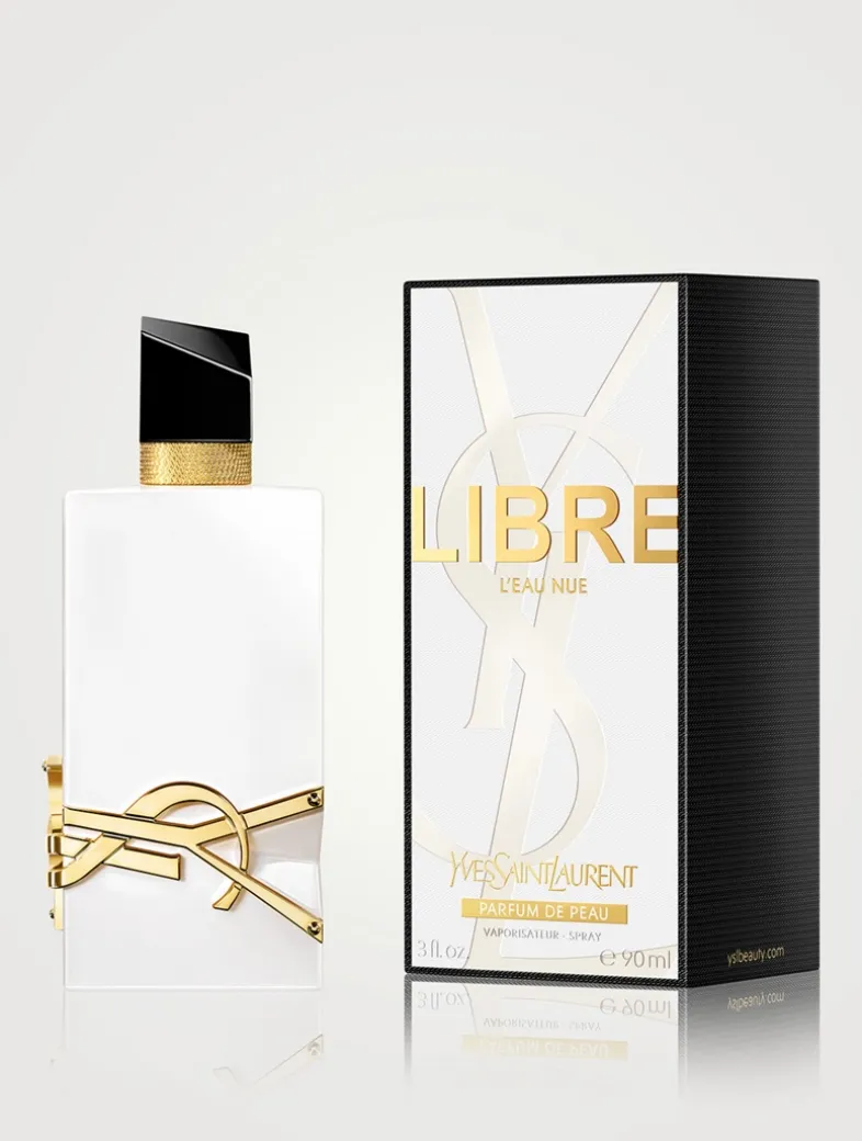 Experience LIBRE L’Eau Nue – Parfum de Peau, the first alcohol-free fragrance by Yves Saint Laurent. This fragrance for her combines orange blossom, green mandarin, and bergamot for a radiant citrus floral scent. Encased in a ceramic white couture bottle with a shiny white finish, sparkling gold cassandre, and slanted black cap.