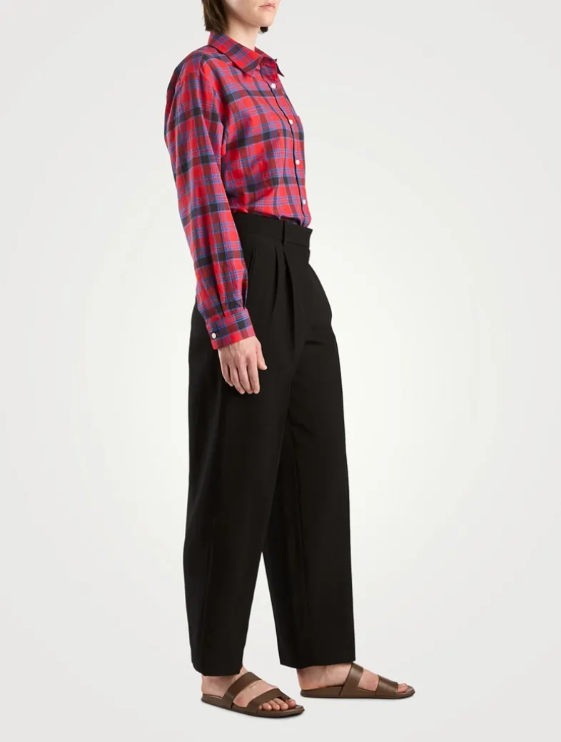 Made in Italy, these high-rise tailored pants are crafted in a Japanese cotton and linen gabardine. Designed with a straight leg, front double pleats, and side welt pockets.