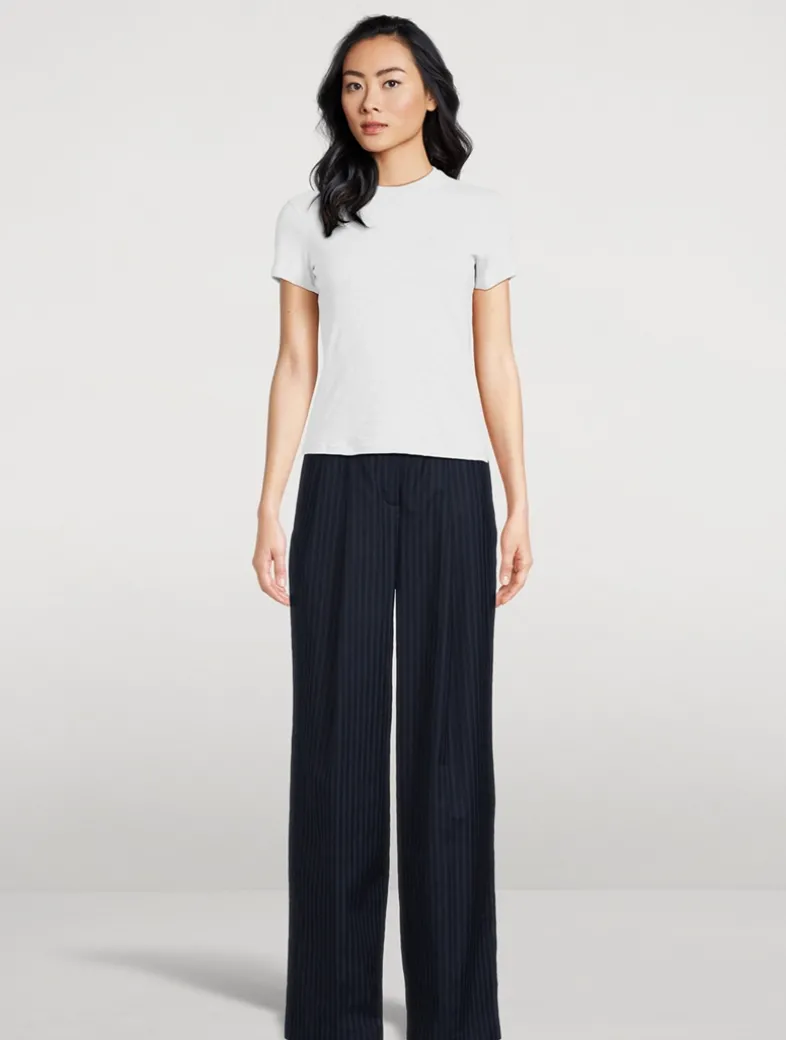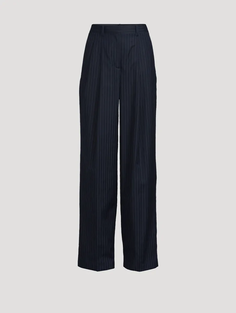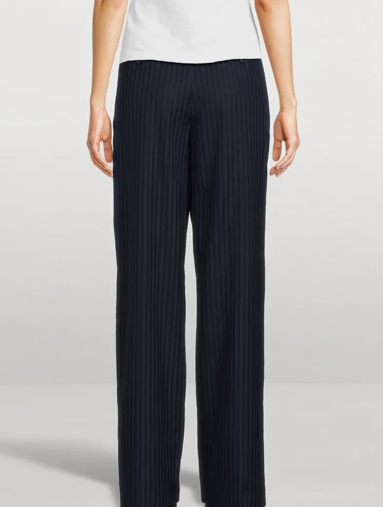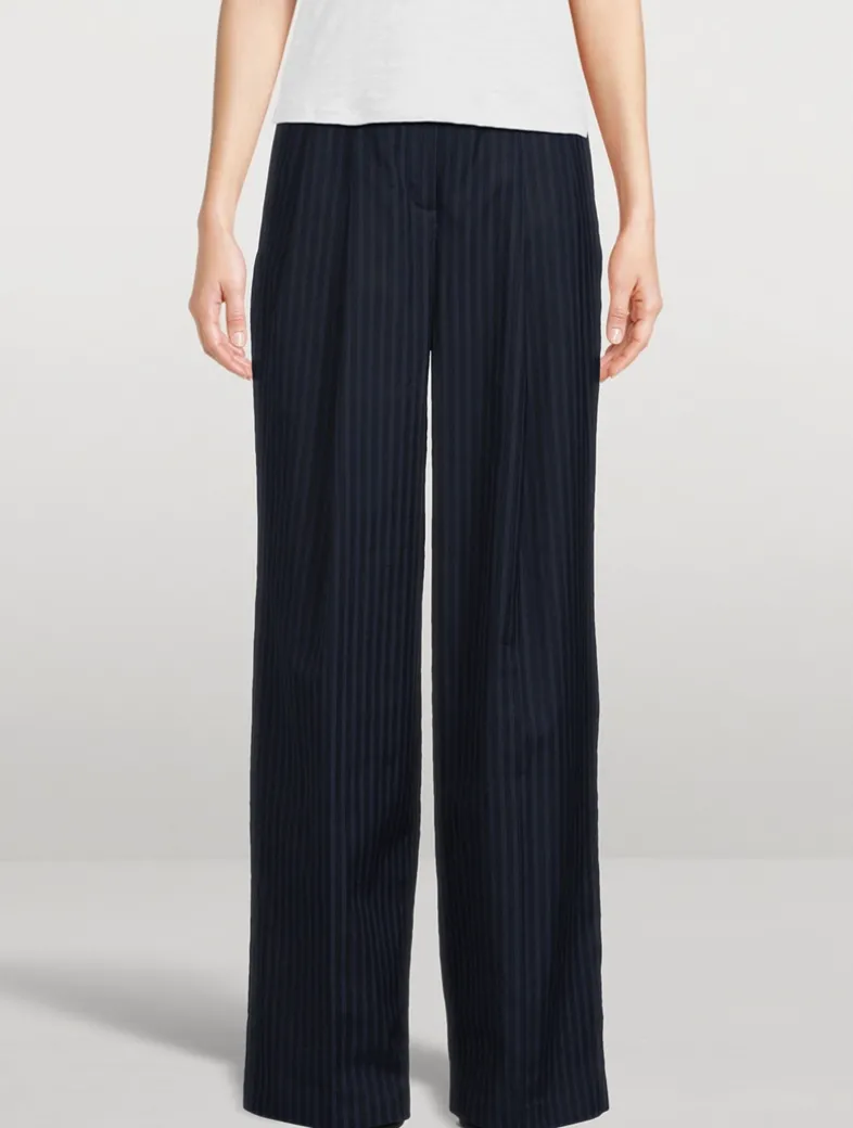 Tailored along a high waistline and wide-leg silhouette, this full-length pant is punctuated with pleated detailing for an elevated look. It’s crafted of a cotton semi-sheer shirting fabric with a tonal stripe pattern that plays with transparency, perfect for the warmer months of the year.