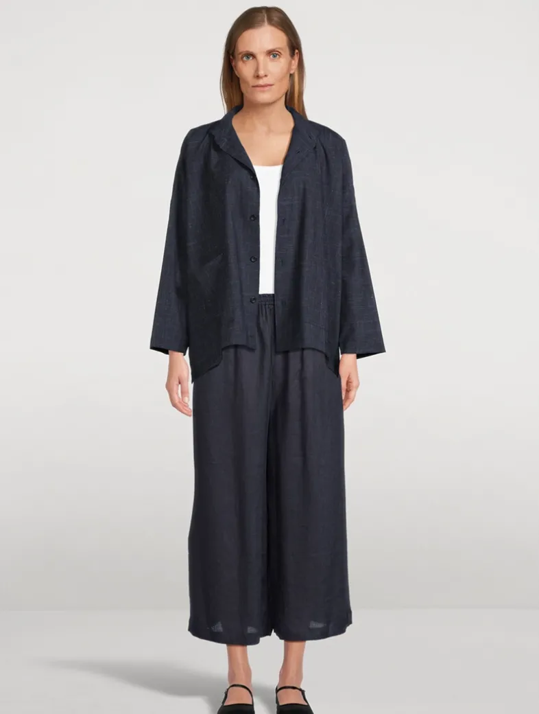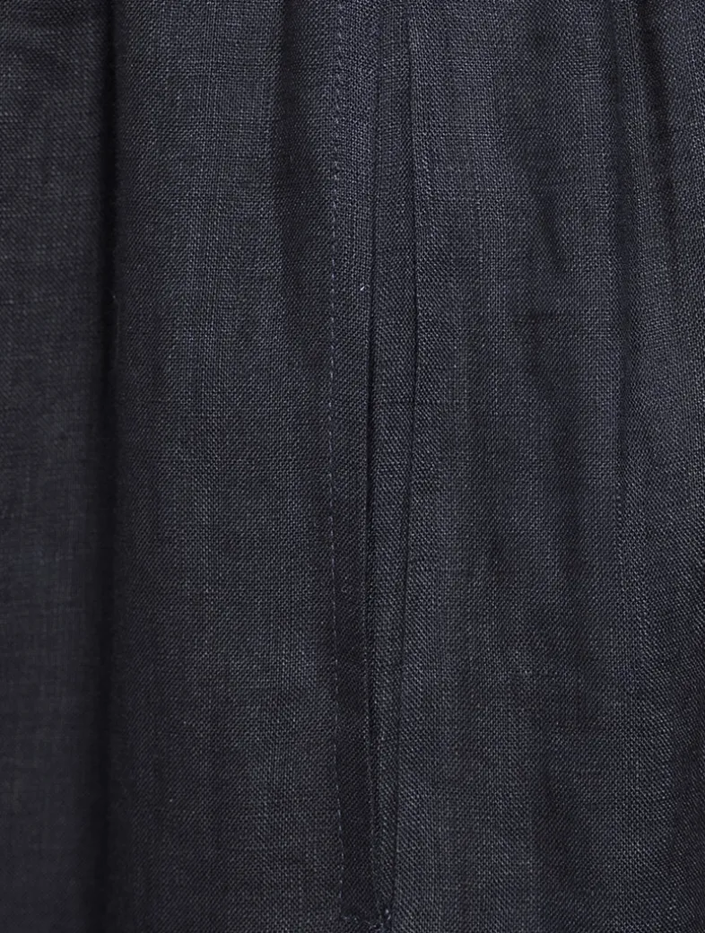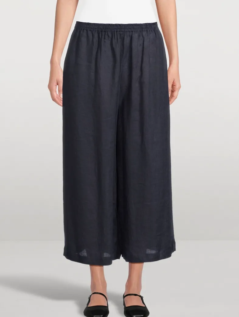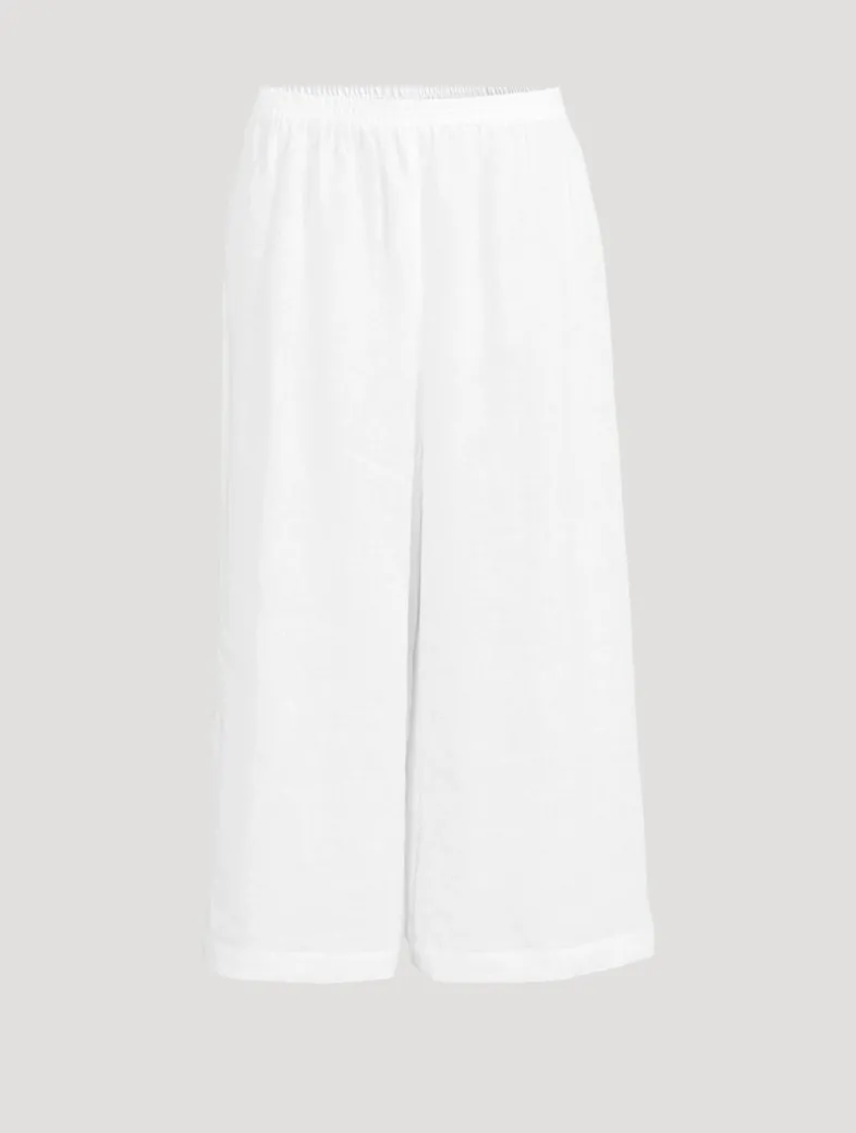 These cropped pants are crafted of a lightweight Italian linen. With their elasticized waist, voluminous wide-leg silhouette, and side slit pockets, they exude a comfortable appeal.