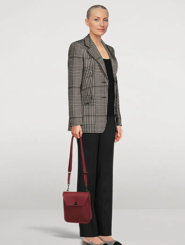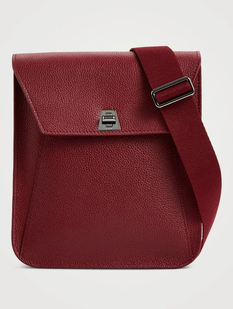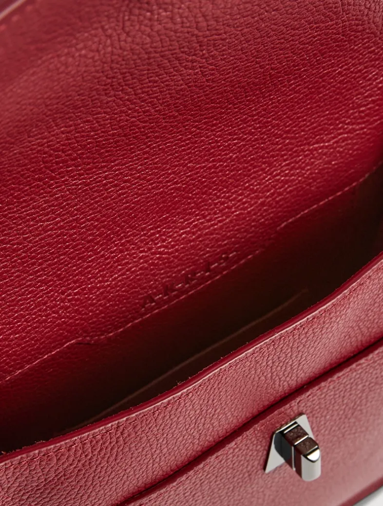 The Anouk Messenger is a practical crossbody bag with a slightly vertical rectangular design. The trapezoidal front flap with custom turn-lock connects it to the other Akris handbag families. It features a spacious main compartment with one clamp pocket and a front and back pocket on the outside. The adjustable strap is created from a wide webbing for stability and comfort while on the go.