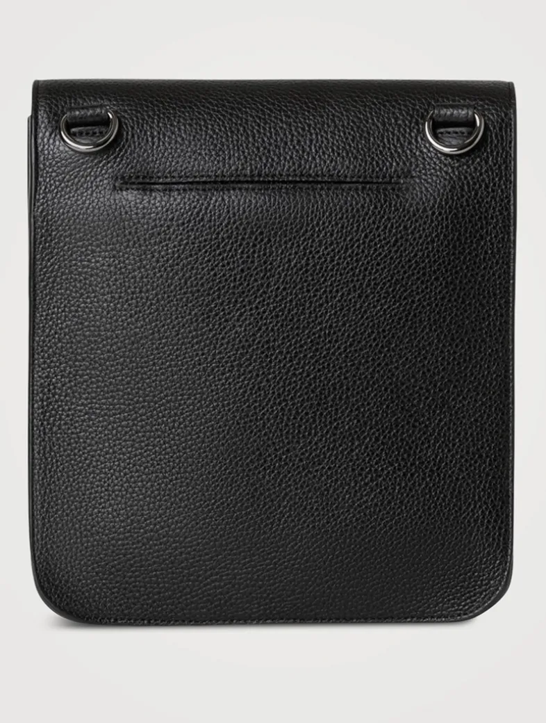The Anouk Messenger is a practical crossbody bag with a slightly vertical rectangular design. The trapezoidal front flap with custom turn-lock connects it to the other Akris handbag families. It features a spacious main compartment with one clamp pocket and a front and back pocket on the outside. The adjustable strap is created from a wide webbing for stability and comfort while on the go.