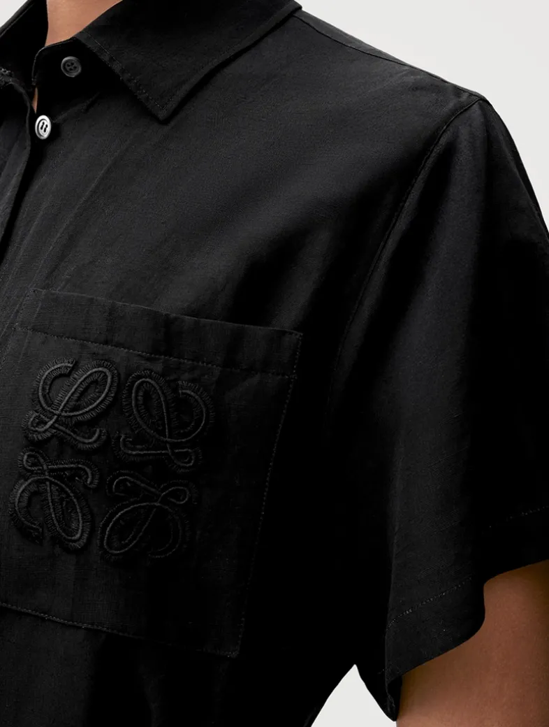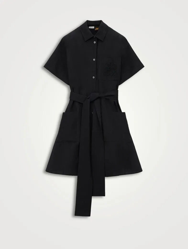 The latest LOEWE x Paula’s Ibiza collection explores the vibrant feeling of summer and is inspired by island freedom. Crafted in a lightweight textured cotton-blend poplin, this tailored shirt dress features Anagram embroidery placed on the chest pocket. It is designed with a self-tie belt at the waist and patch pockets.
