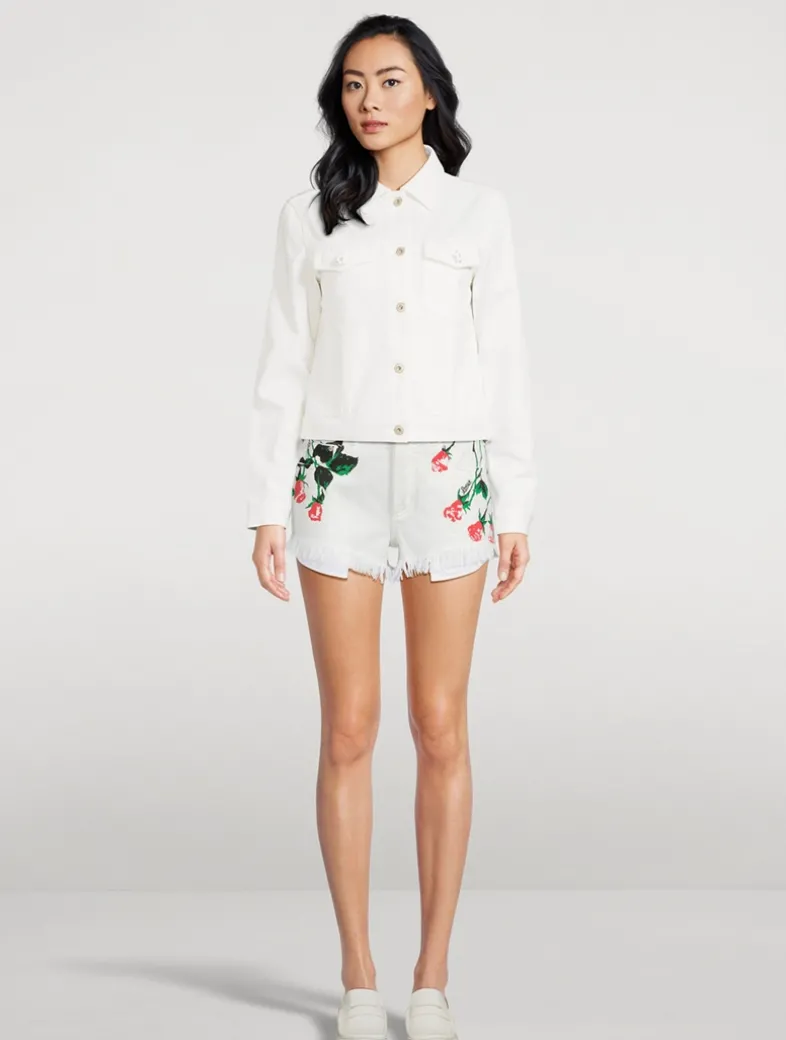 The latest LOEWE x Paula’s Ibiza collection explores the vibrant feeling of summer and is inspired by island freedom. An update to a classic denim style, these cut-off shorts are printed with an exclusive placed floral motif at the sides. They have a mid-rise waist with classic five-pocket detailing.