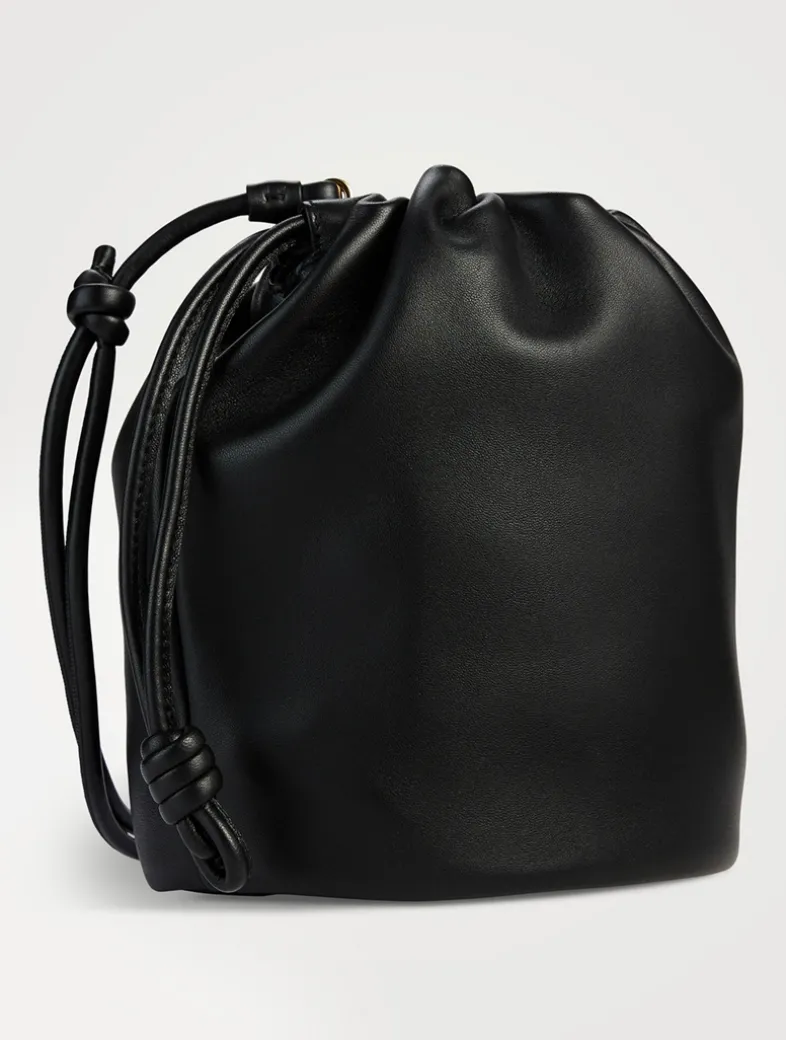 Inspired by the iconic Paula’s boutique, synonymous with the counter cultural movement of 1970s Ibiza, this year’s LOEWE x Paula’s Ibiza collection captures the liberated vibe of summer with high impact prints, effortless styling, and a renewed focus on craft. The sensual and mellow Flamenco is defined by a ruched design complemented by key details such as the signature knots at the sides. The Bucket variation boasts a new everyday size while retaining the line’s feminine aesthetics. Versatile and functional, it can be worn over the shoulder using the donut chain or across the body with the accompanying leather strap. This version is crafted in mellow nappa lambskin.