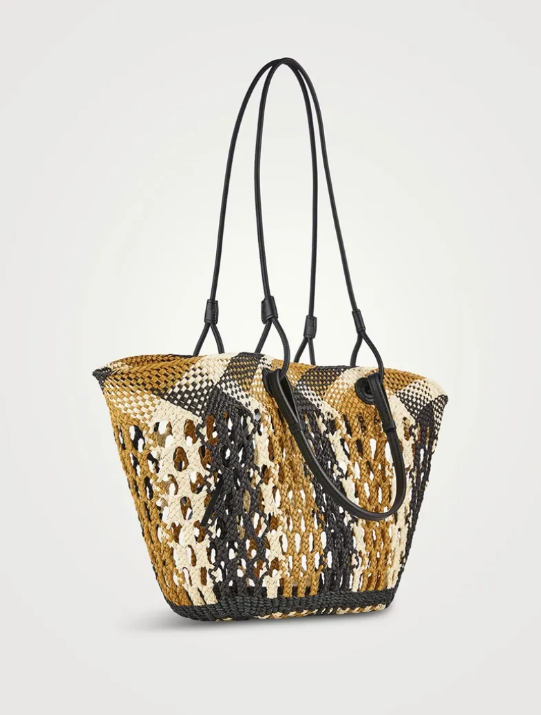 The latest LOEWE x Paula’s Ibiza collection explores the vibrant feeling of summer and is inspired by island freedom. The Anagram basket has a lightweight body with tubular calfskin straps and an embroidered calfskin Anagram. This medium ajouré version is made in Spain using multicoloured iraca palm leaves cultivated and handwoven by artisans in Colombia. Due to its handcrafted nature, sizes may differ slightly, making every item unique.