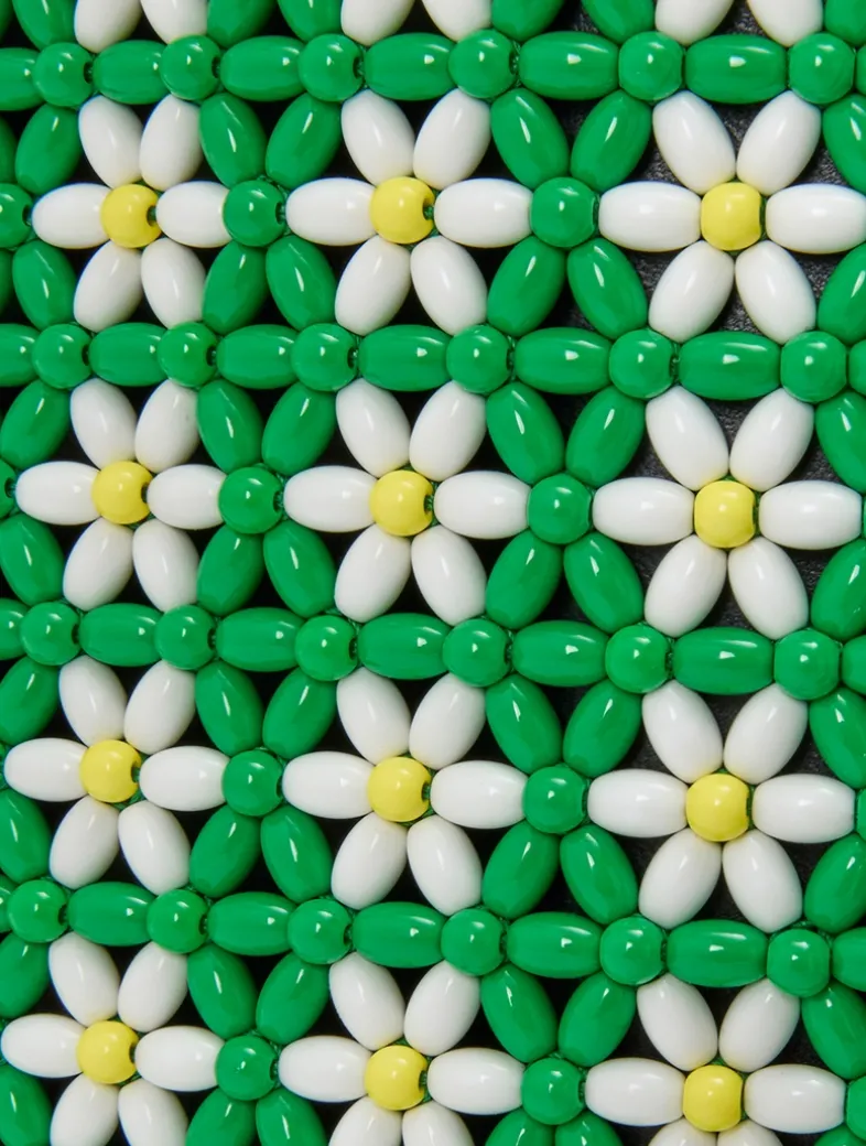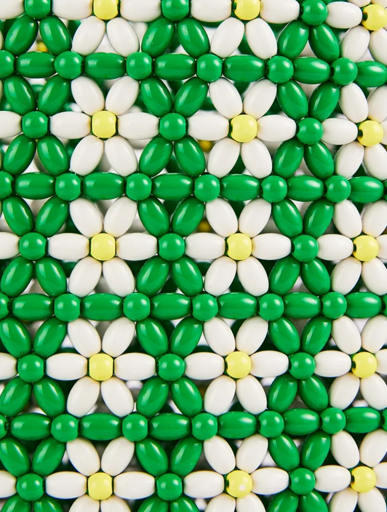 The latest LOEWE x Paula’s Ibiza collection explores the vibrant feeling of summer and is inspired by island freedom. This tote, crafted in multicoloured beads with a floral pattern, features a lambskin drawstring pouch with a removable Anagram Pebble charm. Handles and a removable and adjustable strap allows for multiple carrying options.