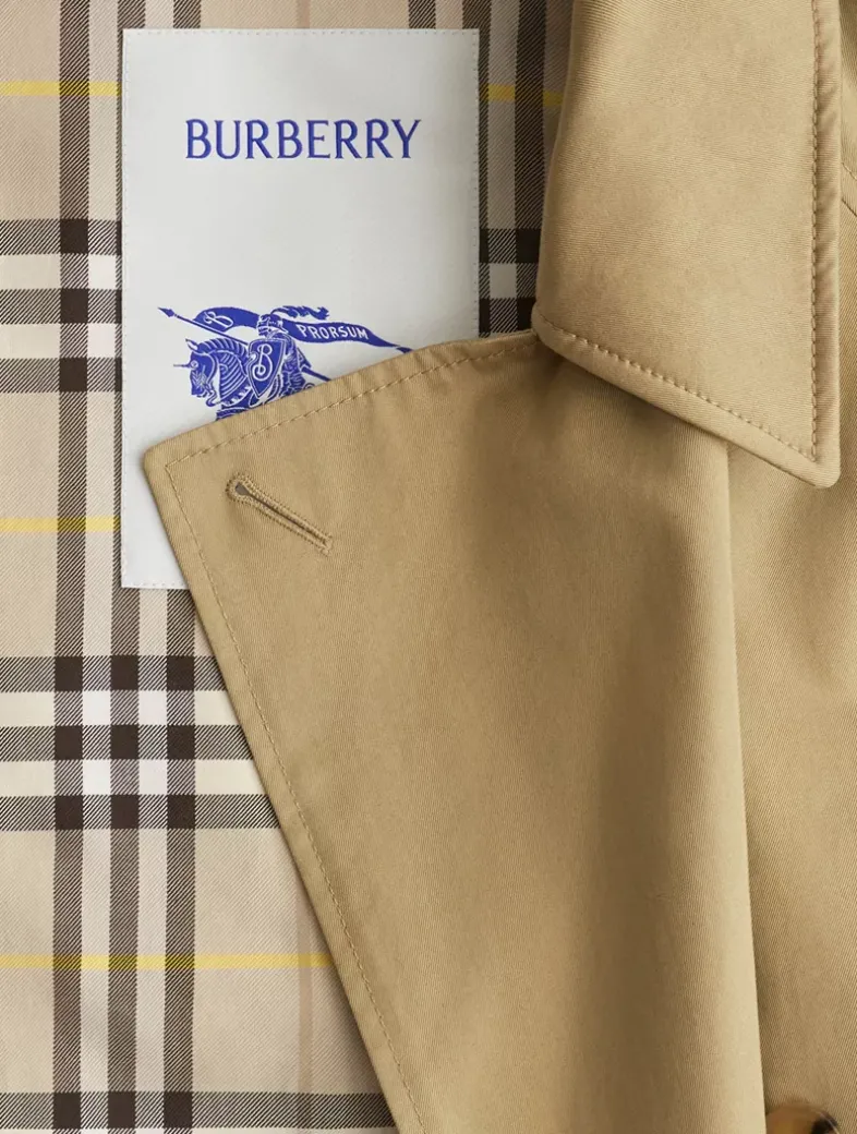 A trench coat made in England from shower-resistant cotton gabardine and lined in Burberry Check. The Castleford is tailored to a regular fit with raglan sleeves.