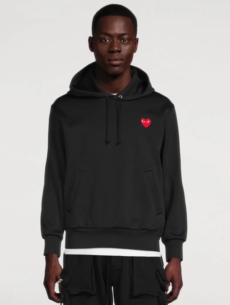 Made in Japan, this hooded sweatshirt is designed with front hand pockets and a signature COMME DES GARCONS heart patch embroidery at the chest.