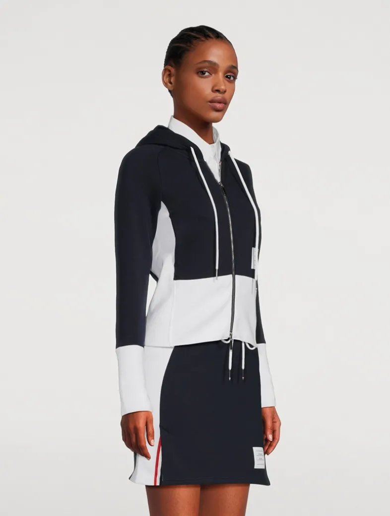 Drawing inspiration from Thom Browne’s sporty heritage, this ultra-comfortable jersey sweatshirt is perfect for active days or relaxing in style. Made from breathable cotton fabric with a drawstring hood, four-bar detailing, and name tag appliqué.