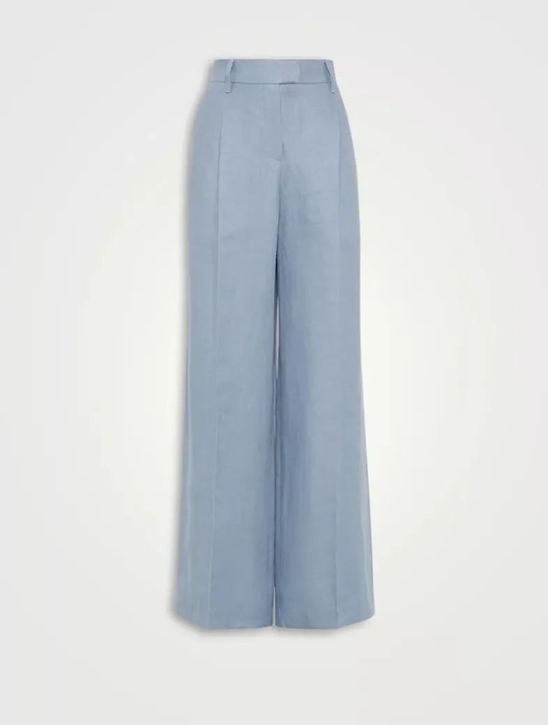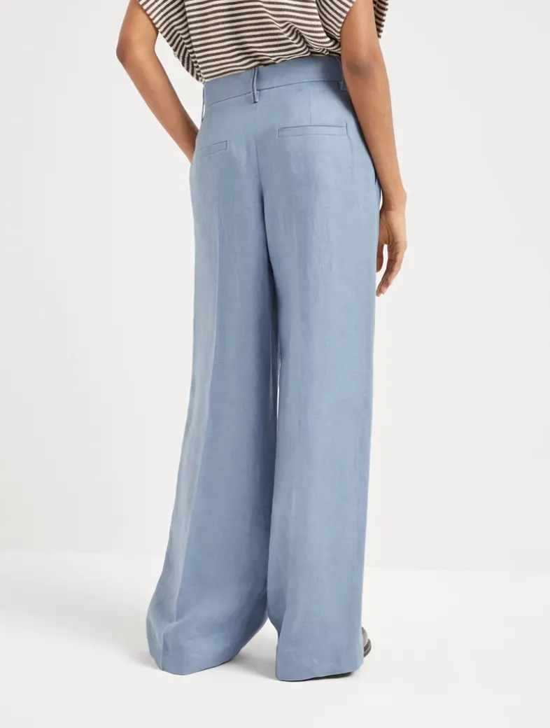Dyed hemp and linen gabardine loose pleated trousers with monili