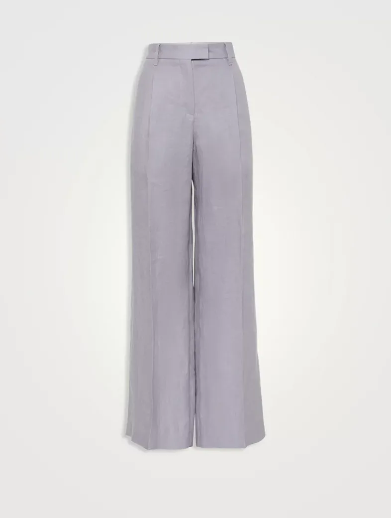 Dyed hemp and linen gabardine loose pleated trousers with monili