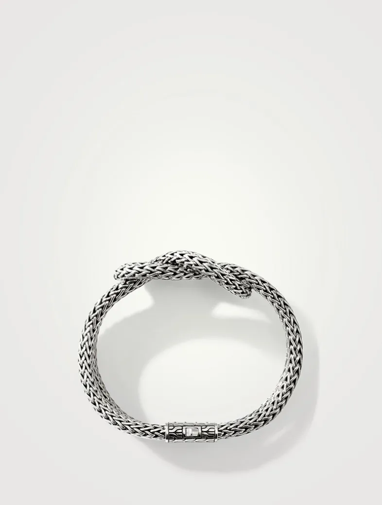 The Love Knot is an enduring symbol of commitment, resilience, and love. Artisan handcrafted, this bracelet is softly woven in sterling silver.